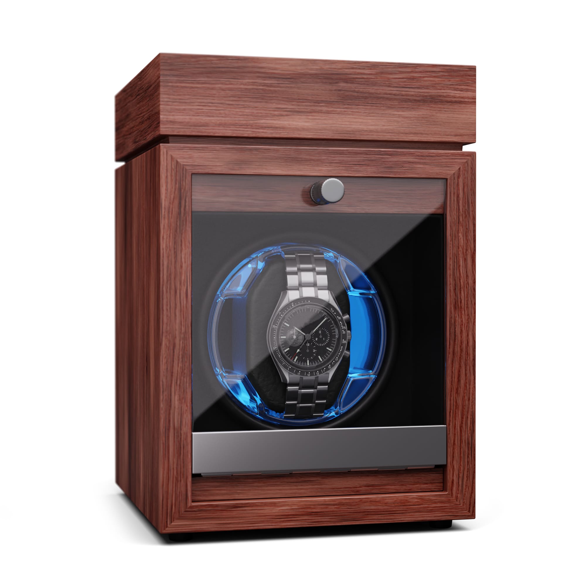 Dokonale tvarované precízne remeselné spracovanie! S naťahovačom hodiniek Klarstein Brienz 1 budú vaši elegantní spoločníci vždy dobre udržiavaní a pripravení na použitie. Automatické hodinky uložené v zariadení sa nepretržite naťahujú pomocou 4 režimov otáčania, ktoré simulujú pohyb zápästia. K starostlivosti o strojček hodiniek prispieva aj rotácia, ktorá účinne pôsobí proti stuhnutiu olejového mazania. Naťahovač hodiniek Brienz 1 má elegantné puzdro dreveného vzhľadu, ktoré štýlovo zapadne do ambientu každej miestnosti. Štýlové integrované modré osvetlenie LED možno nastaviť pomocou jednoduchého a intuitívneho ovládania. Praktický otočný gombík na nastavenie požadovaného režimu sa nachádza vpravo. Vďaka integrovanému vankúšiku z pamäťovej peny možno do naťahovača ľahko umiestniť hodinky s rôznymi veľkosťami remienkov, ako aj dámske i pánske hodinky. Napájanie sa uskutočňuje prostredníctvom USB kábla, ktorý možno použiť s akýmkoľvek napájacím zdrojom USB, a preto je úplne nezávislý od prevládajúceho typu zásuvky. Ďalšou zaujímavosťou tohto modelu je malá priehradka na šperky v hornej časti, ktorá poskytuje bezpečné miesto na prstene, náramky, náhrdelníky a podobné predmety, keď sa práve nenosia.Vďaka svojim skromným rozmerom a hladkému chodu tichého motorčeka s prevádzkovou hlučnosťou nižšou ako 10 dB možno naťahovač hodiniek jednoducho umiestniť priamo na nočný stolík alebo do iných nehlučných zón.Upozorňujeme, že zobrazené hodinky nie sú súčasťou dodávky.