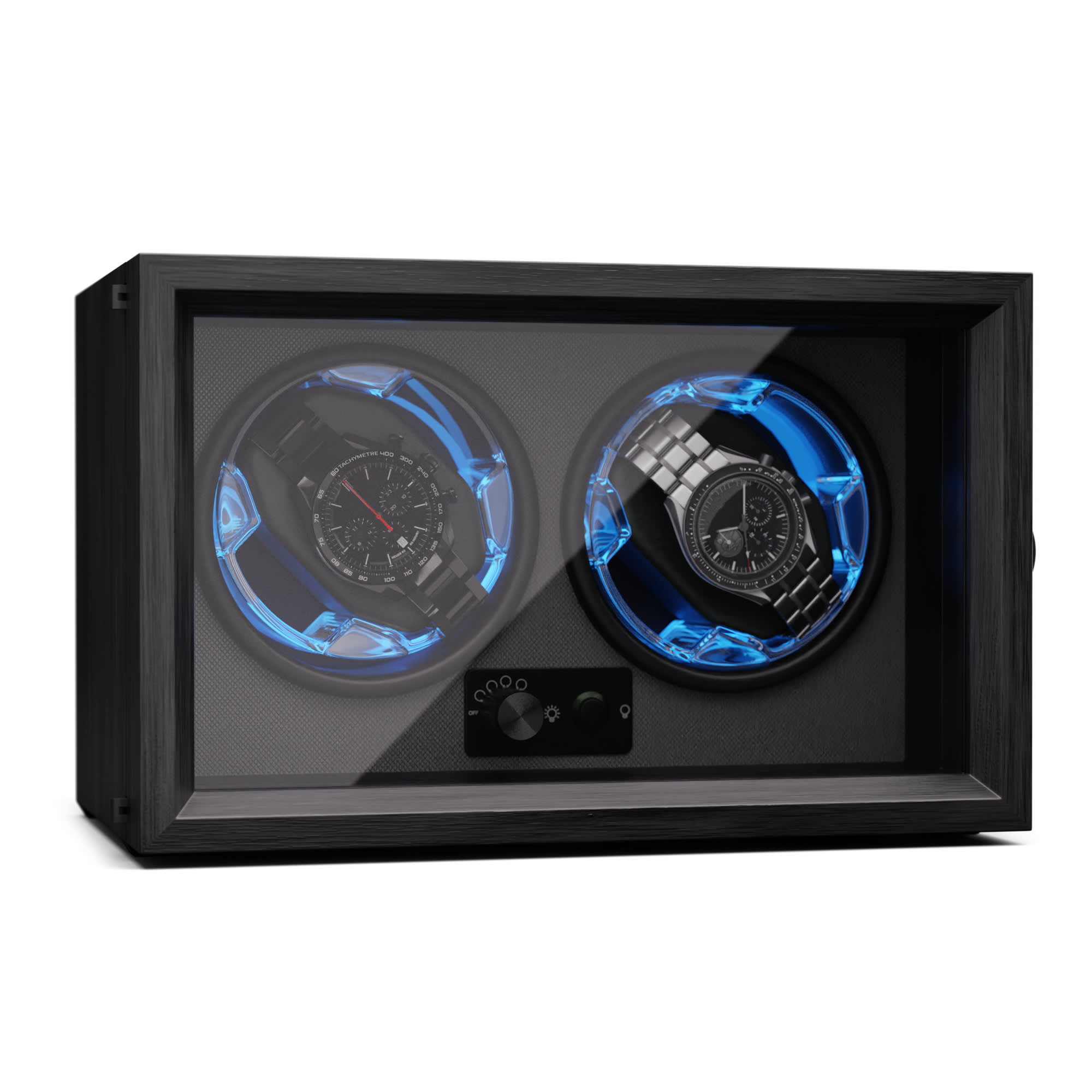 Klarstein Brienz 2, naťahovač hodiniek, 2 hodinky, 4 režimy, drevený vzhľad, modré vnútorné osvetlenie