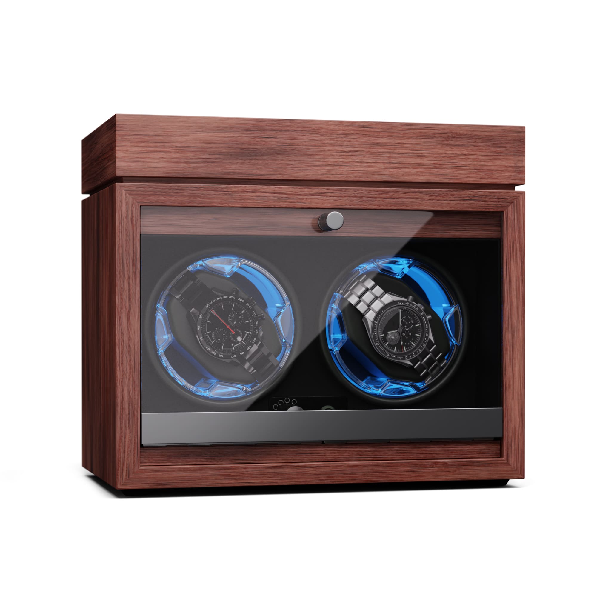 Klarstein Brienz 2, naťahovač hodiniek, 2 hodinky, 4 režimy, drevený vzhľad, modré vnútorné osvetlenie, priehradka na šperky