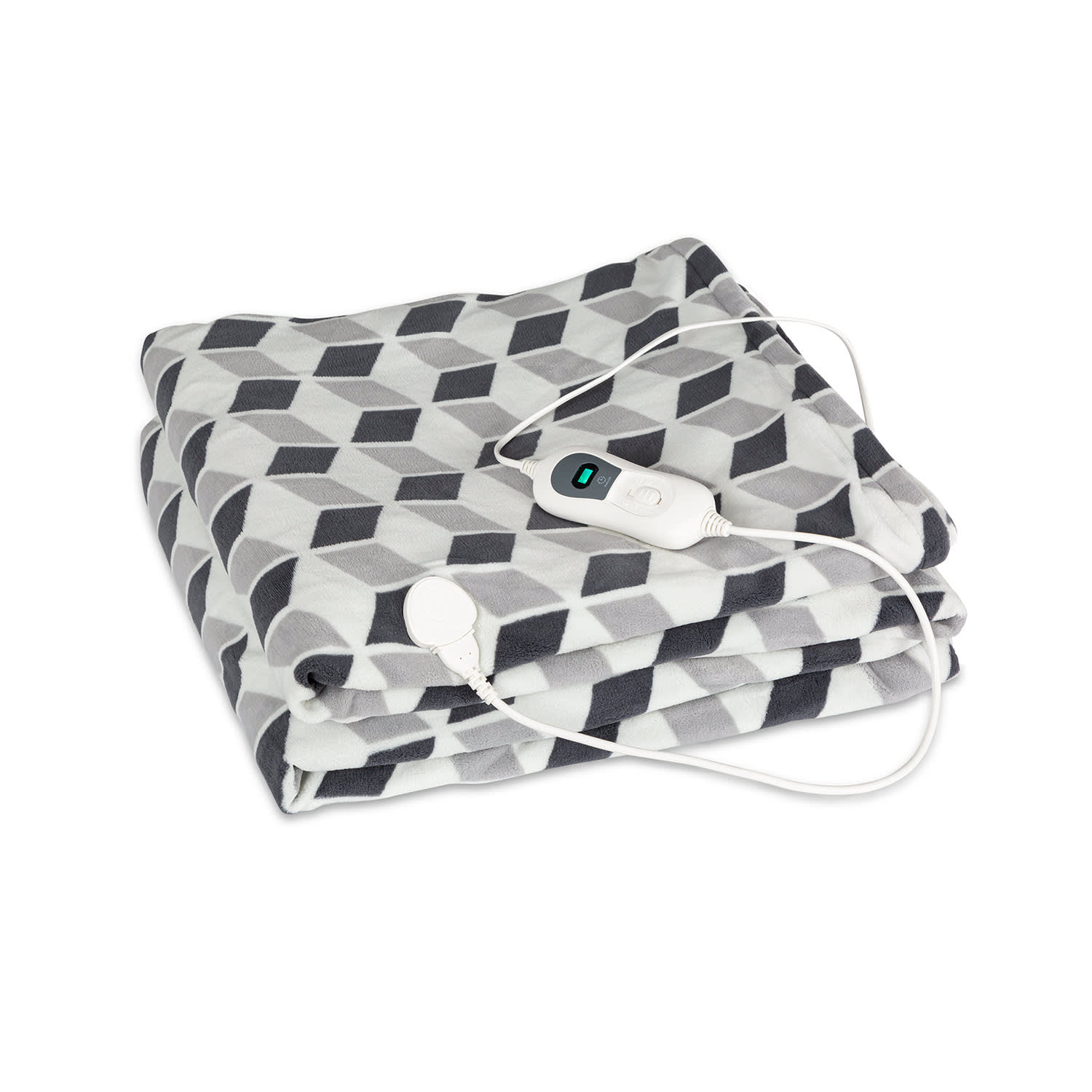 Klarstein Dr. Watson XXL, vyhrievacia deka, 120 W, 200 x 180 cm, coral fleece, sivá, štvorce