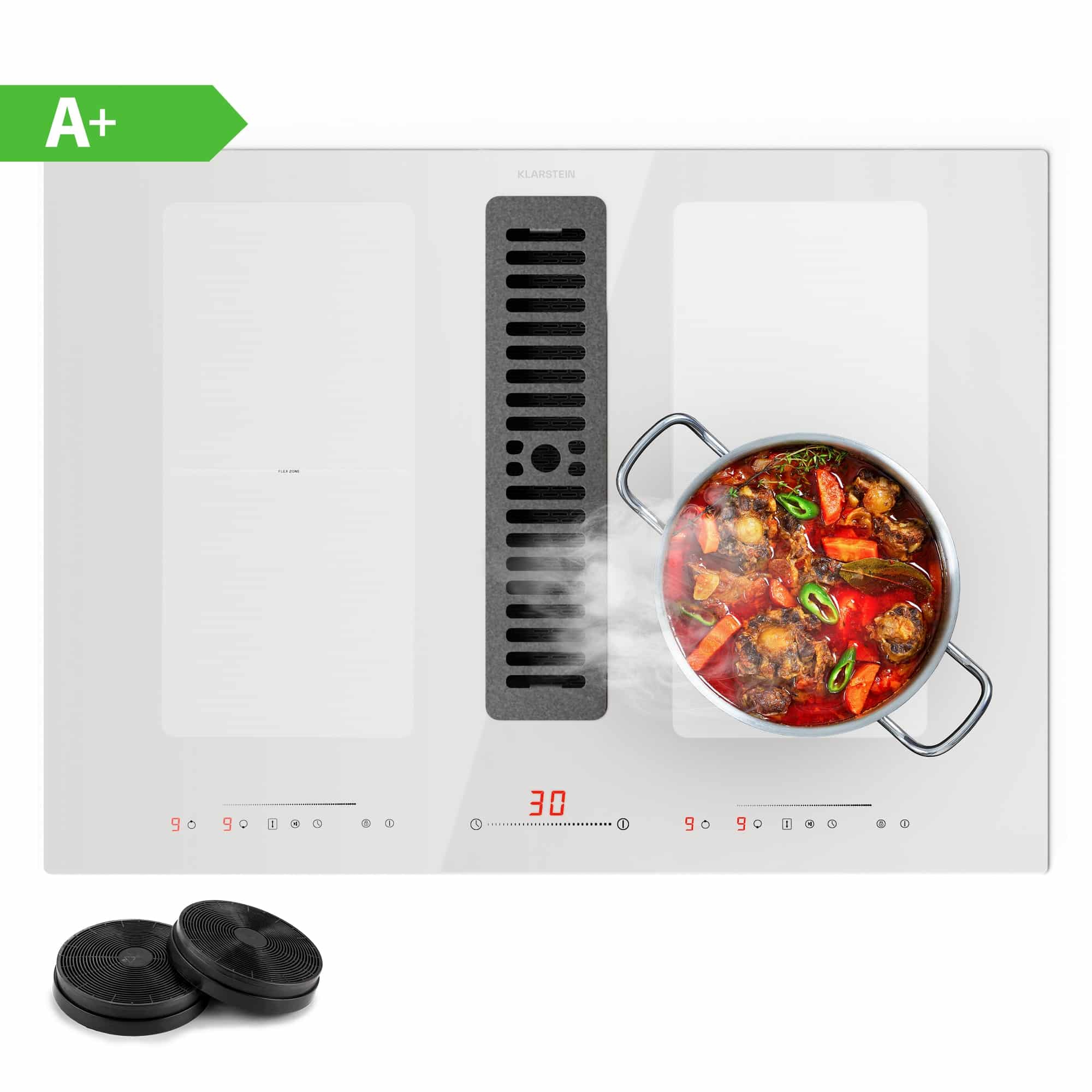Klarstein Full House 72 Down Air System, indukčná varná doskA digestor, 329 m³/h, EEC A