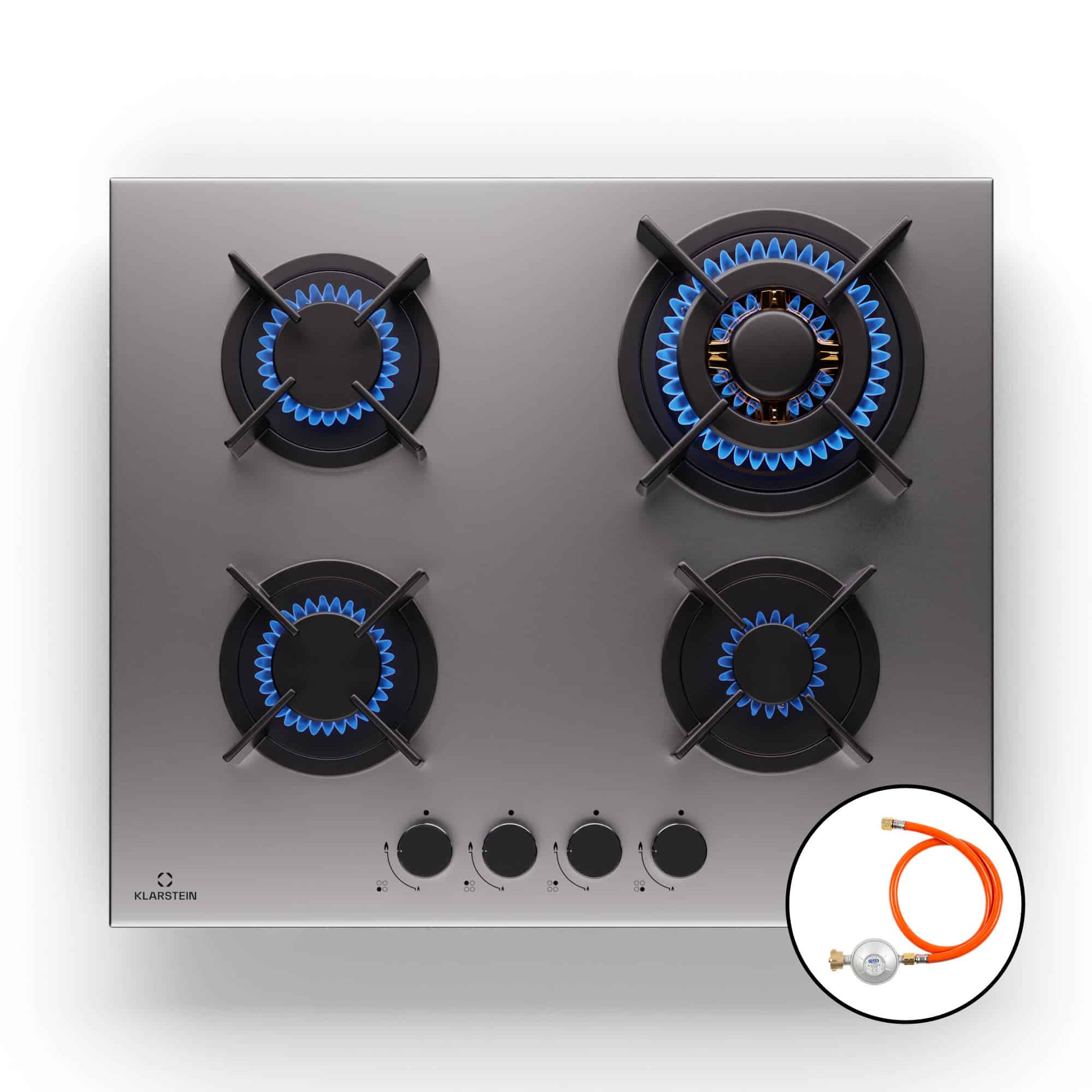 Klarstein Goldflame 4, plynová varná doska, 4 horáky, sebestačná, zemný plyn/propán, nehrdzavejúca oceľ