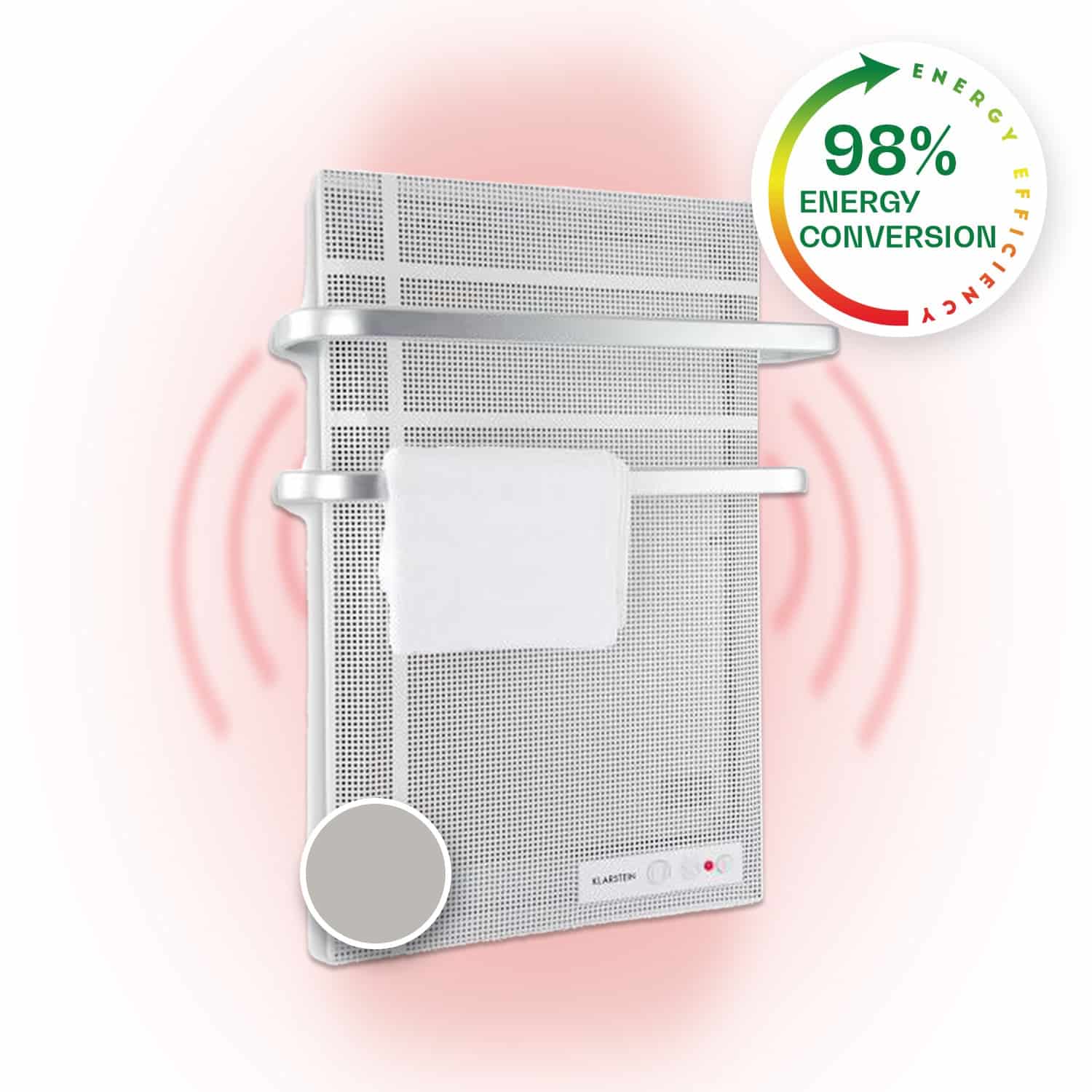 Príjemné teplo na relaxáciu v kúpeľni. Infračervený vyhrievací panel Klarstein Hot Spot Waveprináša príjemné teplo do každej miestnosti veľmi efektívnym a priestorovo úsporným spôsobom. Zároveň vám prakticky poskytuje príjemn teplé a suché uteráky. Nástenný ohrievač Klarstein Hot Spot Wave predstavuje revolúciu vo vykurovaní vďaka modernej IR technológii ComfortHeat. Veľmi plochý vyhrievací panel s rozmermi 51 x 80 cm sa montuje priamo na stenu a poskytuje svoju vykurovaciu službu mimoriadne úsporným spôsobom. Je ideálny do kúpeľne vďaka svojej odolnosti voči striekajúcej vode podľa normy IP24. Jeho zaoblený povrch je celý vyrobený z hliníka a šíri nadčasovú atmosféru Bauhausu, ktorá dodá každej kúpeľni nádych luxusu. Infračervený vyhrievací panel Klarstein Hot Spot Wave poskytuje relaxačné teplo v kúpeľni každý deň a zabezpečí vám príjemne teplé a suché uteráky.
