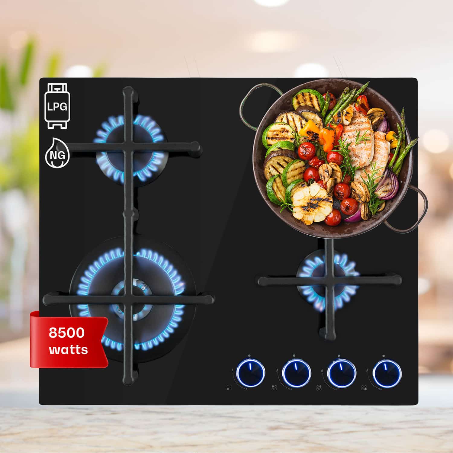 Klarstein Illuminosa 4, plynová varná doska, 4 Sabaf horáky, sklokeramika