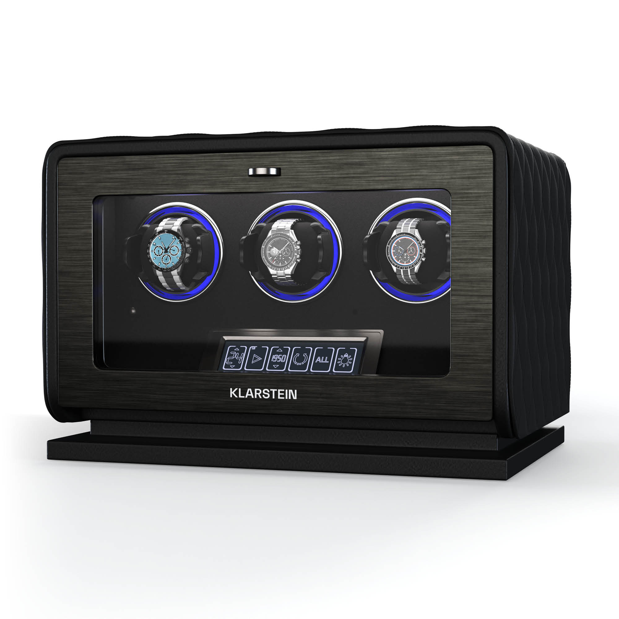 Naťahovač hodiniek   Klarstein  LuminousTime ponúka luxusné a tiché riešenie, vďaka ktorému budú vaše automatické hodinky vždy pripravené na použitie. Naťahovač hodiniek  LuminousTime od spoločnosti  Klarstein  zaujme elegantným dizajnom z vegánskej kože a tvrdeného skla v kombinácii s ozdobami z nehrdzavejúcej ocele. Tichý japonský motor zaručuje nehlučnú prevádzku, ktorá je ideálna do spální a kancelárií. Vďaka flexibilným vankúšikom sa prispôsobí väčšine hodiniek a ovláda sa pomocou dotykového LCD panela alebo diaľkového ovládača. Vďaka 20 rôznym nastaveniam TPD a trom smerom otáčania môžete zabezpečiť dokonalú starostlivosť o svoje mechanické hodinky. Integrované svetlá RGB a biele LED diódy tiež štýlovo prezentujú vaše hodinky. Klarstein  LuminousTime by sa mal prevádzkovať v pravidelných cykloch. Trpezlivo počkajte, kým sa naťahovač hodiniek po niekoľkých minútach zastaví, pretože sa spúšťa automaticky každú hodinu.Zažite dokonalú starostlivosť o svoje hodinky a kúpte si  naťahovač hodiniek  Klarstein  LuminousTime už teraz!