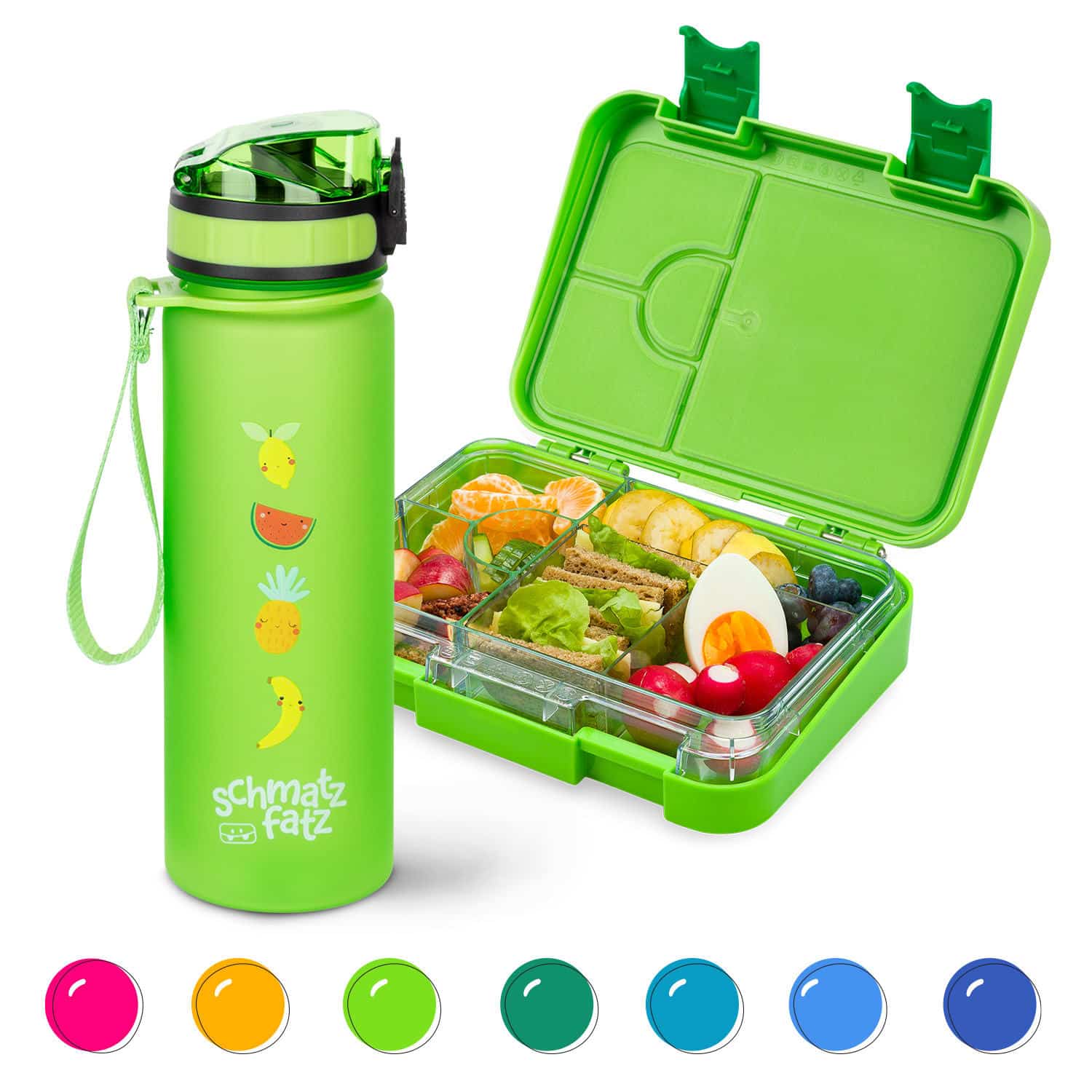 Raňajková súprava schmatzfatz od Klarstein je ideálnym spoločníkom na každý deň. Či už pre mladých alebo starších: Praktická súprava obsahuje box na obed a farebne zladenú fľašu na pitie. A pritom vždy cestujete naľahko. Dóza na obed aj fľaša na pitie sú vyrobené zo super ľahkého a extrémne nárazuvzdorného Tritanu, ktorý samozrejme neobsahuje BPA, a preto je úplne zdravotne neškodný! Obedovú dózu možno rozdeliť na 4 alebo 6 malých priehradiek. Jej špeciálne veko zaisťuje najlepšiu ochranu pred únikom. Bez obáv ju môžete naplniť aj hustými tekutinami, ako je jogurt alebo tvaroh. Fľaša na pitie má objem pol litra a je tiež vybavená nepriepustným uzáverom. Či už v školskej taške, batohu alebo dokonca v držiaku na bicykli: z raňajkovej súpravy schmatzfatz od Klarstein nič nevytečie. Dóza na olovrant aj fľaša na pitie sa dajú umývať v umývačke riadu a ľahko sa čistia. Či už v škole, škôlke, pri športe alebo na výletoch: fľaša na pitie schmatzfatz od Klarstein vám ponúka mnoho výhod vo všetkých každodenných situáciách. Presvedčí vás svojím športovým dizajnom vo výraznej farbe s roztomilým logom.