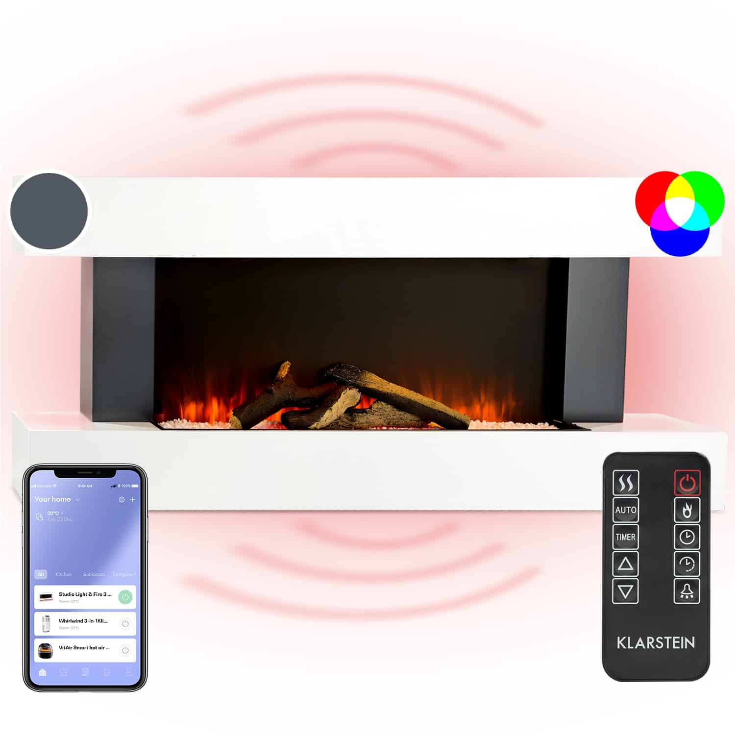 Klarstein Studio Light & Fire 1 Smart, krb, 1000/2000 W, MDF, WiFi Control