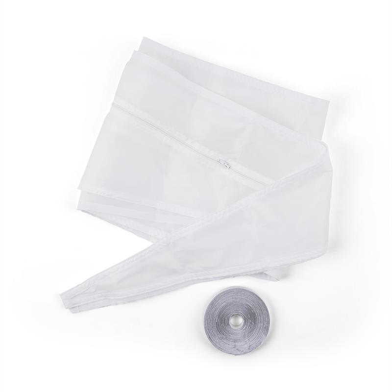 S tesniacou sadou od Klarstein dokážeš z tvojej prenosnej klimatizácie získať ešte viac výkonu. Inovatívna textilná fólia zabraňuje prenikaniu teplého vzduchu a značne zvyšuje efektívnosť klimatizácie. Sada je použiteľná na všetky druhy okien, jedno či vyklopené, otvorené alebo aj šikmé strešné okná. Montáž je pritom veľmi jednoduchá: s upínacou páskou pripevníte textilné tesnenie okolo rámu okna a vďaka dĺžke 3,9 m ju môžete použiť aj na väčšie okná. Zabudovaný zips ponúka aj možnosť, posúvať umiestnenie výfukovej hadice v rámci tesnenia. Ak výfukovú hadicu vytiahnete z tesnenia dovnútra, môžete okno kedykoľvek zatvoriť, bez toho aby ste textilnú fóliu museli odstrániť.Ďalší pozitívny efekt: tesnenie na okno zabraňuje vstupu hmyzu ako sú osy, muchy a komáre, ako aj teplému vzduchu. Prosím berte na vedomie, že tento produkt je určený na použitie s klimatizáciami Pure Blizzard od Klarstein. Okrem toho sa sada dá všeobecne použiť so všetkými klimatizáciami s výfukovou hadicou. Prosim skontrolujte kompatibilitu Vášho zariadenia.