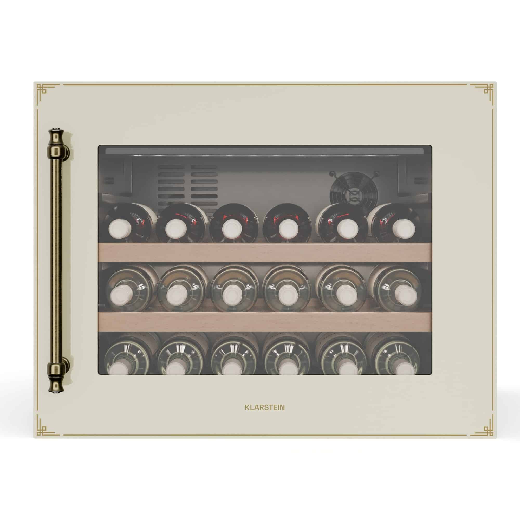 Chladnicka na víno Klarstein Vinsider Victoria 28 kombinuje vintage dizajn s optimálnou funkcnostou na dokonalé uskladnenie a prezentáciu vašich vín.S kapacitou až 28 fliaš ponúka chladnicka na víno Klarstein Vinsider Victoria 28 dostatok priestoru pre vaše najcennejšie vína. Vysokokvalitné spracovanie s odnímatelnými drevenými policami zarucuje nielen štýlovú prezentáciu, ale aj skladovanie bez vibrácií a s ochranou proti UV žiareniu, ktorá dlhodobo zachováva kvalitu vína. Intuitívne dotykové ovládanie umožnuje jednoduchú reguláciu teploty v rozsahu od 5 do 20 stupnov Celzia, takže vaše vína budú mat vždy ideálnu teplotu na pitie. Vdaka tichej prevádzke s hlucnostou len 40 dB a elegantnému vnútornému LED osvetleniu chladnicka na víno dokonale zapadne do každej kuchyne a vytvorí príjemnú atmosféru. Táto vstavaná vinotéka je ideálnym riešením pre milovníkov vína.Chladnicku na víno je potrebné pravidelne cistit a podla potreby upravovat teplotu, aby sa zabezpecilo optimálne skladovanie vašich vín.Vyskúšajte rozdiel a kúpte si chladnicku na víno Klarstein Vinsider Victoria 28 pre dokonalé uskladnenie vína.