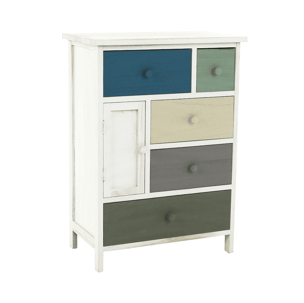 Komoda, biela/farebné zásuvky, MONET 1 NEW