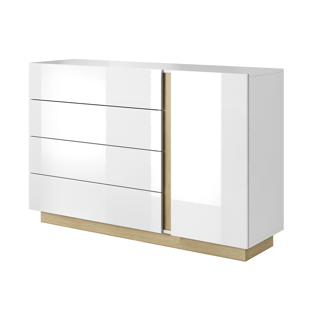 Komoda D4S, biela/dub grandson/biely lesk, CITY