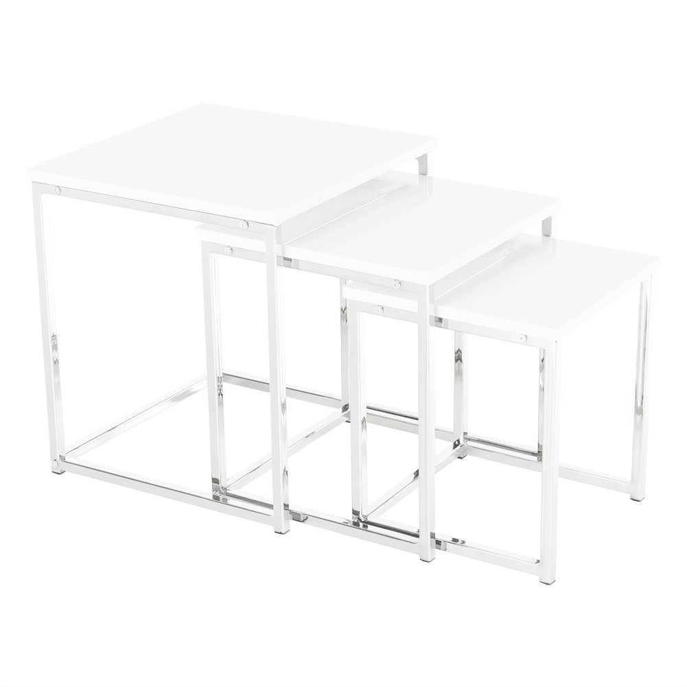 Konferenčné stolíky, set 3 ks, biela extra vysoký lesk, ENISOL TYP 3