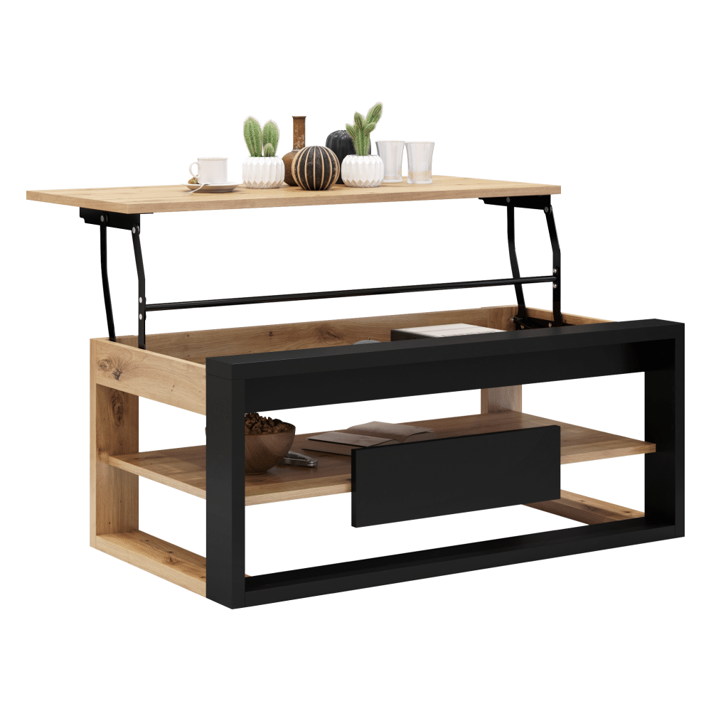 Konferenčný stolík, čierna/dub artisan, FLAME