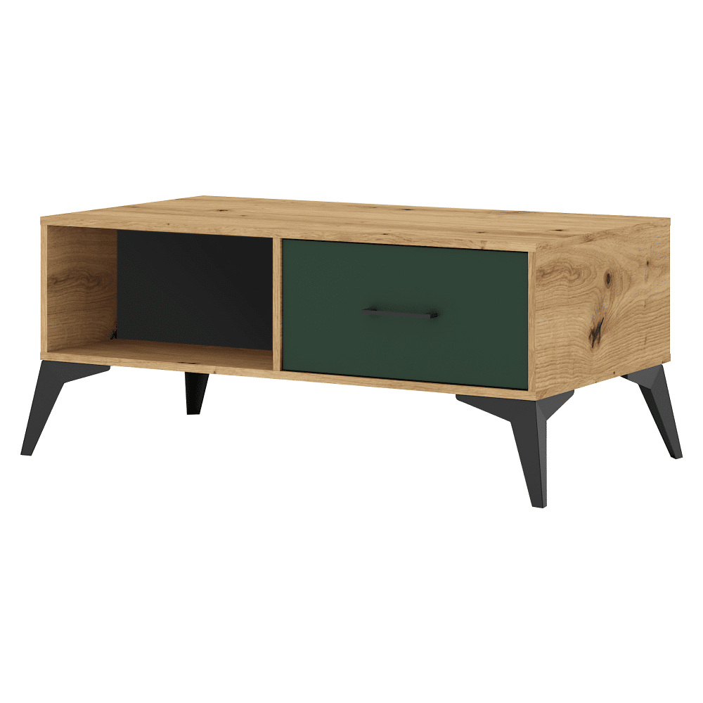 Konferenčný stolík, dub artisan/tmavozelená, LUGON LU8