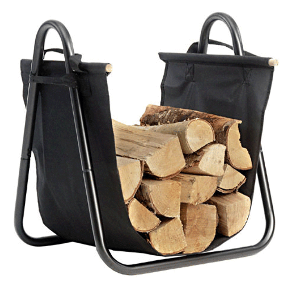 Kôš na drevo, čierna, kované železo/látka, SARAO