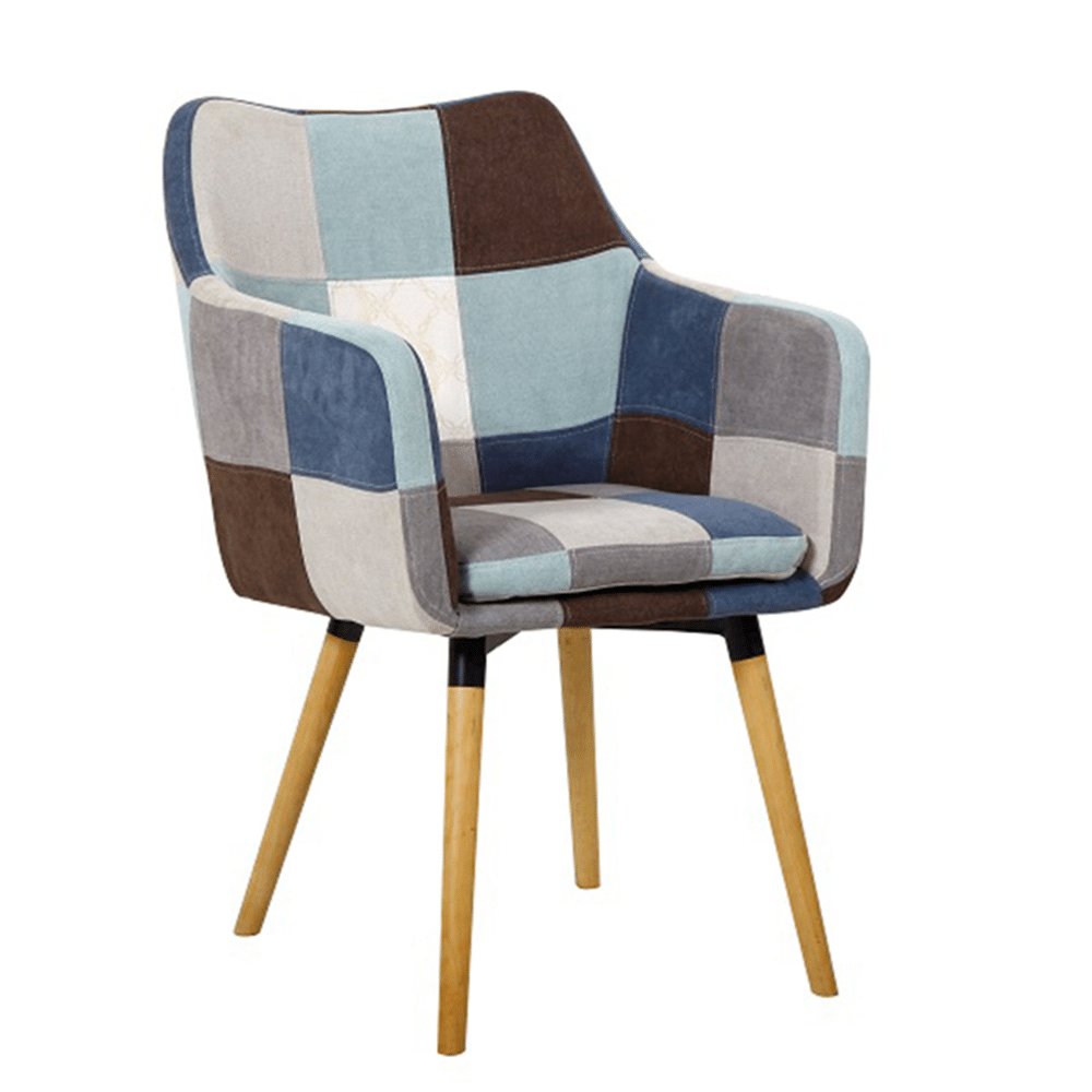 Kreslo, modrá/béžová vzor patchwork/buk, LANDOR
