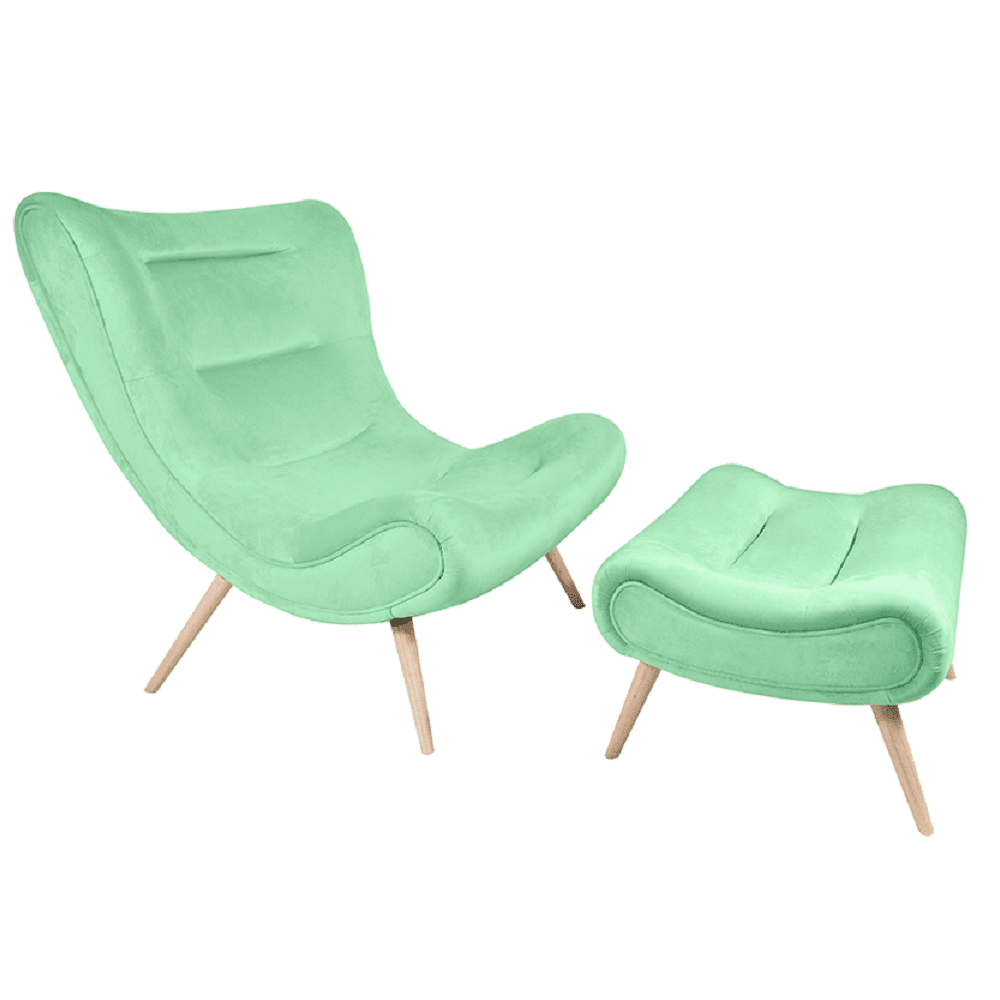 Kreslo s podnožou, neomint Velvet látka/kaučukové drevo, KIRILO