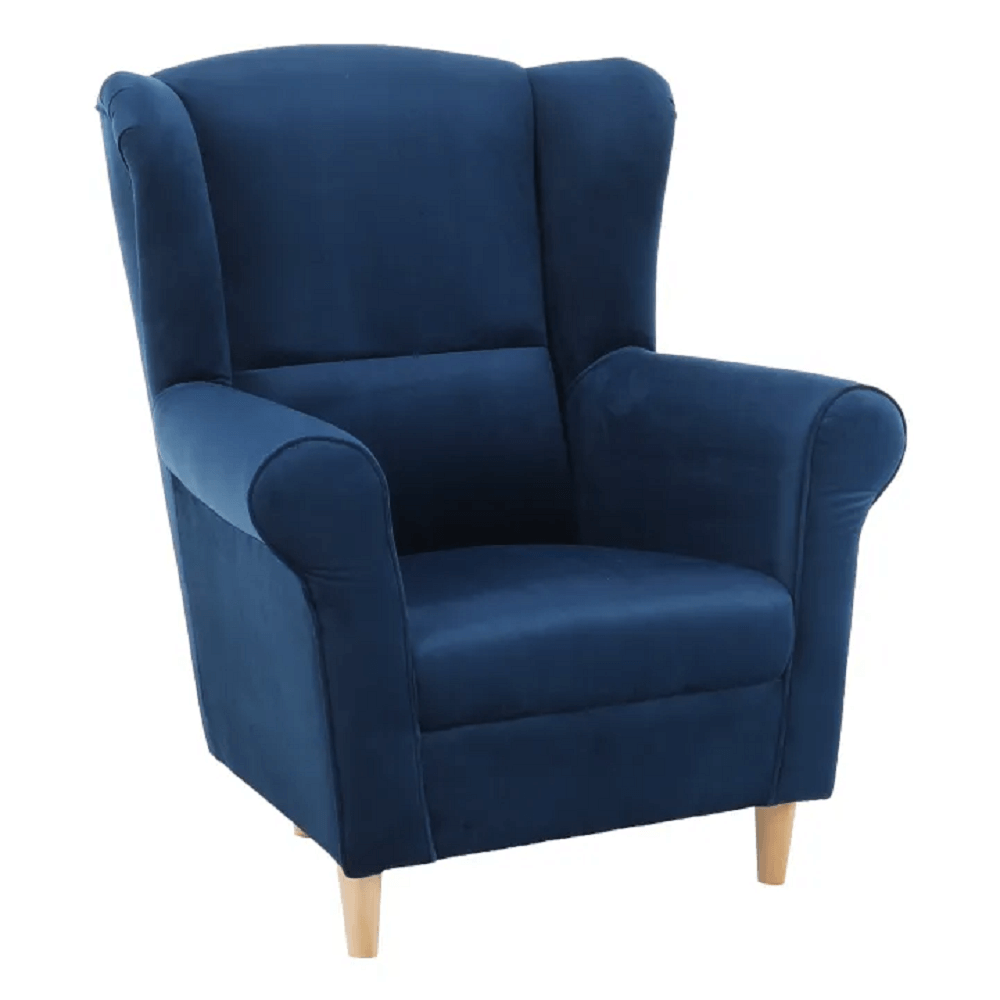 Kreslo ušiak, látka modrá, CHARLOT