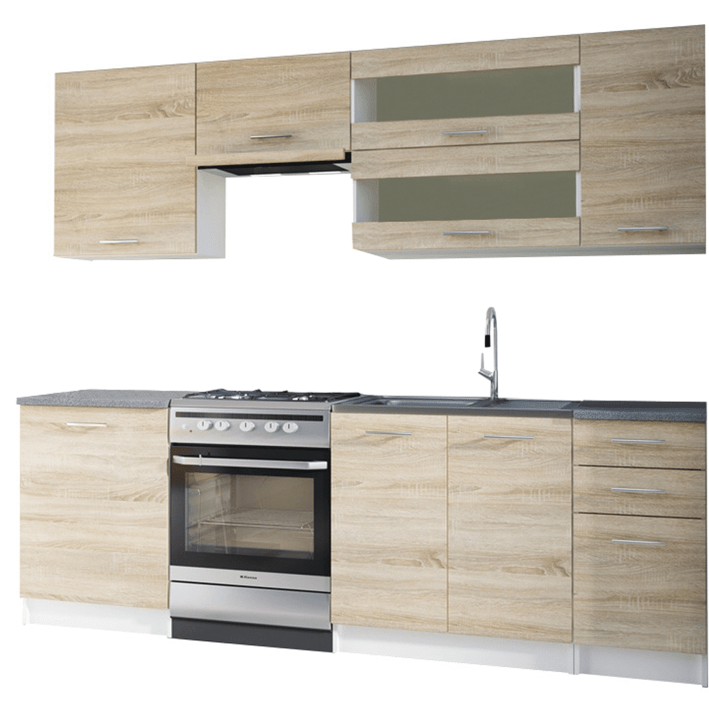 Kuchynská linka 2,4 m, dub sonoma / biela, FABIANA