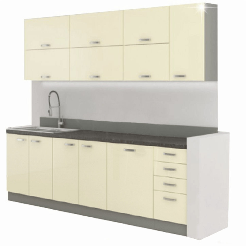 Kuchynská linka, krémová extra vysoký lesk/sivá, PRADO