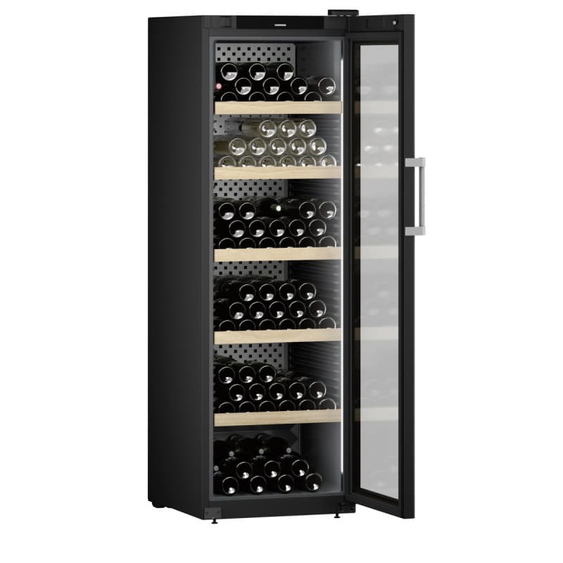 Vinotéka klimatizovaná, objem 443l, max.početandnbsp;fliaš Bordeaux 0,75l- 229 ks, materiál políc: bukové drevo, počet úložných plôch 6, TempProtectPlus, Humidity Control, VibrateSafe, Presentation Light integrovaný SmartDevice, 1-zónová, Rozsah teplotných zón: +5 až +20°C, Dvere: Izolačné sklo, UV Protect Plus , zámok, Čierna