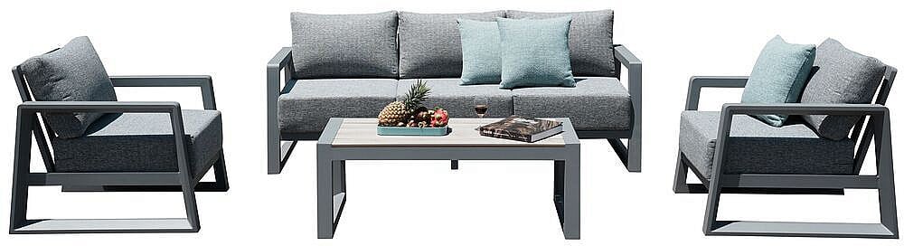 Luxusná súprava s hliníkovou konštrukciou, ktorá je pokrytá práškovou farbou. Podušky s molitanovou výplňou 20 cm.
