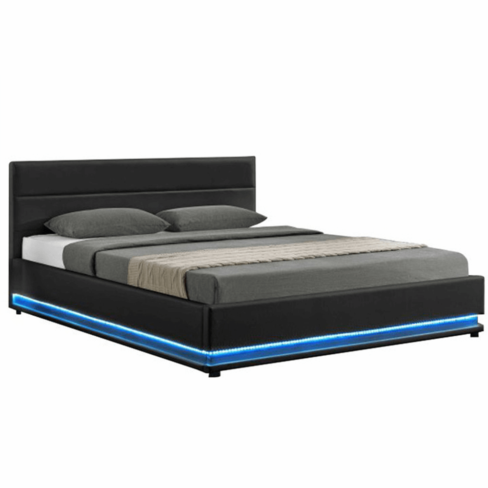 Manželská posteľ s bielym osvetlením, čierna, 160×200, BIRGET NEW