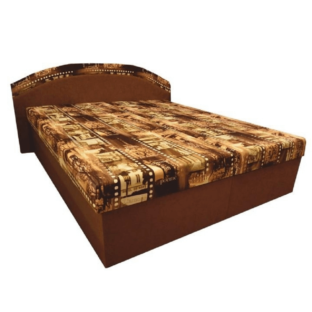 Klasická celočalúnená manželská posteľ s úložným priestorom a s molitánovými matracmi na roštových doskách.