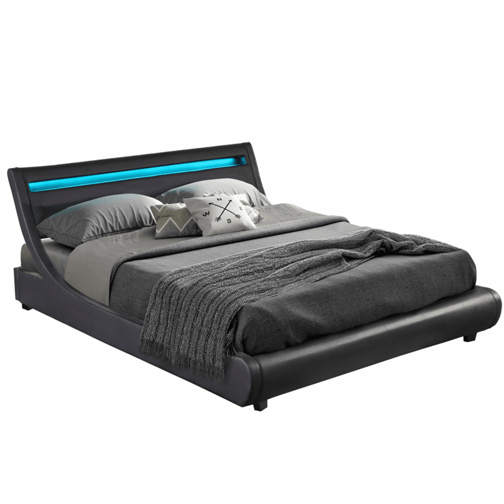 Manželská posteľ s RGB LED osvetlením, čierna, 180×200, FELINA