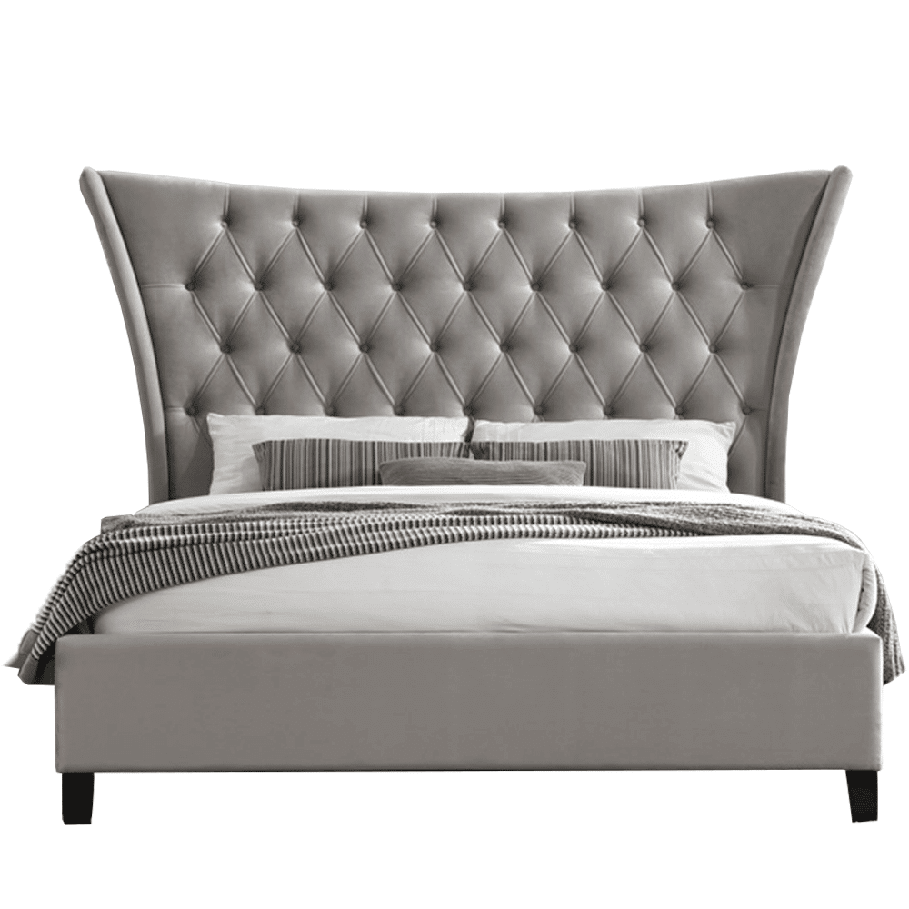Posteľ s vysokým prešívaným čelom a lamelovým roštom ALESIA