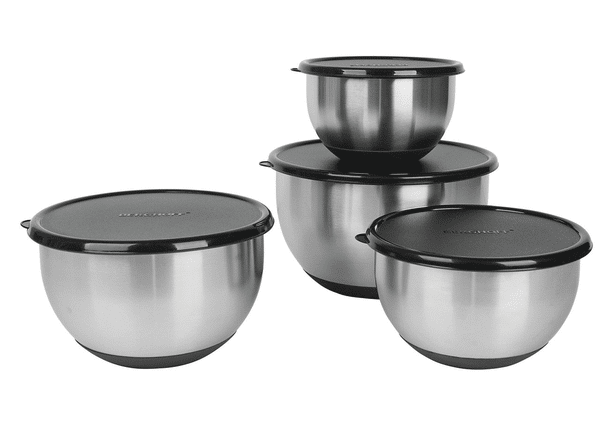 Misky s vekom 8-dielneNaložili ste si mäso, urobil šalát, nátierku alebo cesto na chutný koláč? Znie to ako príprava na nedeľný obed a pritom vám chceme iba našepkať, že na to všetko vám poslúži sada týchto nerezových misiek. Všetky misky môžete zakryť čiernymi plastovými vekami, ktoré sú v balení.Sada obsahuje:1x miska 16 cm / 1,5 l1x miska 18 cm / 2 l1x miska 20 cm / 3 l1x miska 24 cm / 4,5 lMateriál: 18/10 nerezová ocel, PVC viečkaÚdržba: možnosť umytia v umývačke riadu