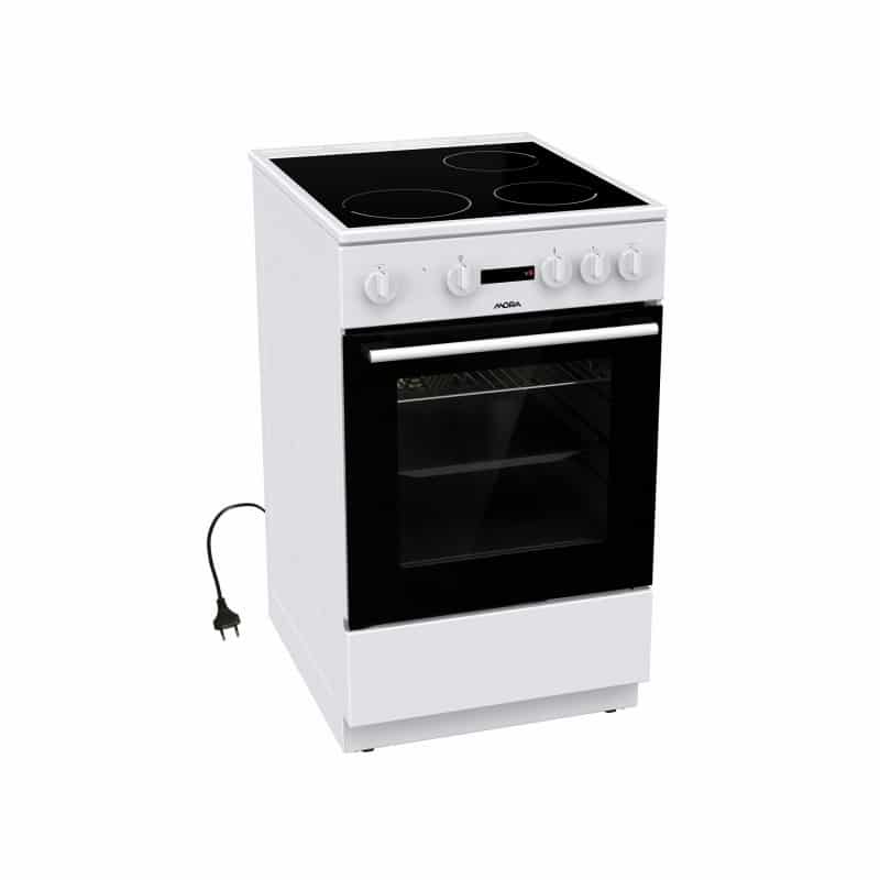 Elektrický sporák s klasickou rúrou, Farba: Biela, Sklokeramická platňa, Počet varných zón: 3, Klasická rúra – 3 spôsoby ohrevu, ECO CLEAN – funkcia na čistenie rúry, Rozmery spotrebiča (v x š x h): 85 x 50 x 59,4 cm