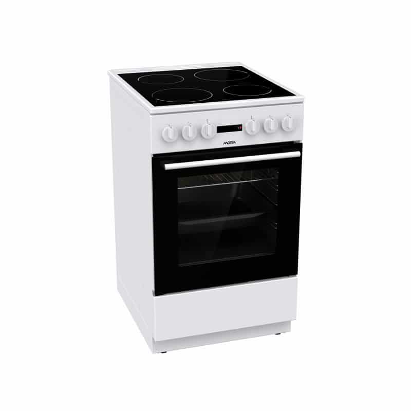 Elektrický sporák s klasickou rúrou, Biela farba, 4 varné zóny, Klasická rúra – 3 spôsoby ohrevu, Objem rúry 74 l, Energetická trieda – A, Príslušenstvo: 1 x rošt, 1x XXL hlboký pekáč, Rozmery spotrebiča (v x š x h): 85 x 50 x 59,4 cm