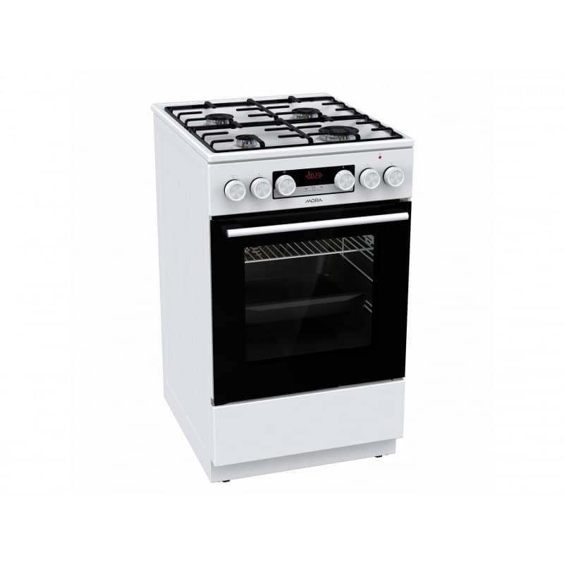 Kombinovaný sporák s multifunkčnou rúrou, Biela farba, 4 plynové horáky s poistkami STOP GAS, INTEGROVANÉ zapaľovanie horákov, Objem rúry 62 l, Energetická trieda – A, Príslušenstvo: 1x rošt, 1x XXL hlboký pekáč, Rozmery spotrebiča (v x š x h): 85 x 50 x 59,4 cm, EcoClean – čistenie parou