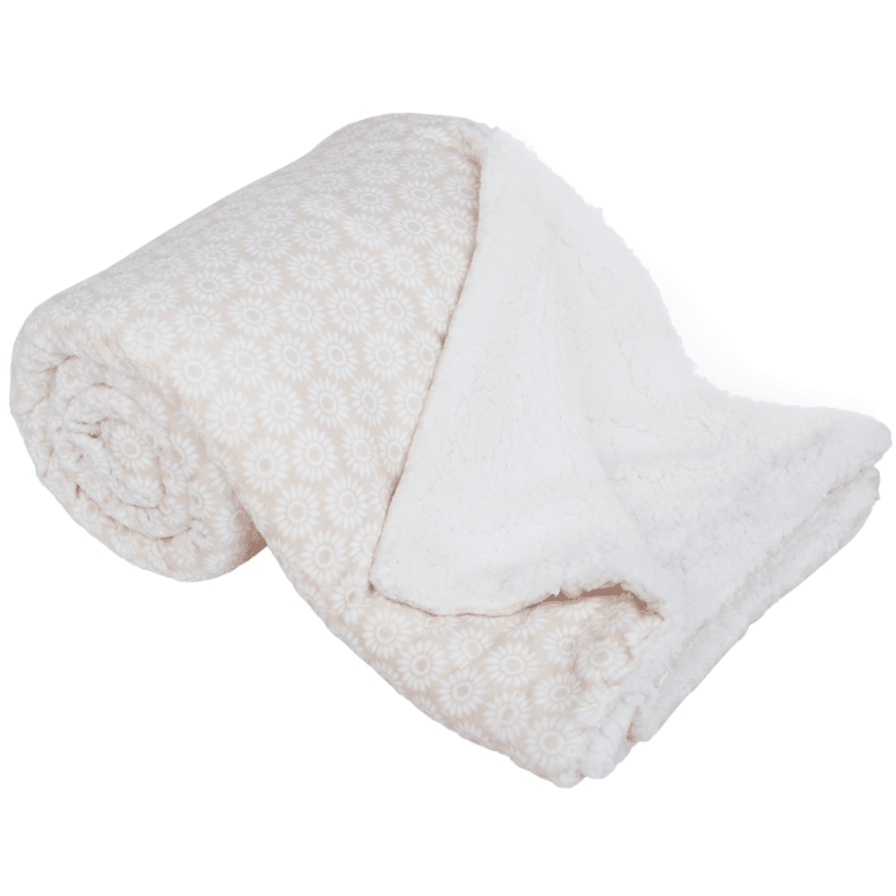 Obojstranná baránková deka, béžová/biela/vzor, 150×200, AVANTI