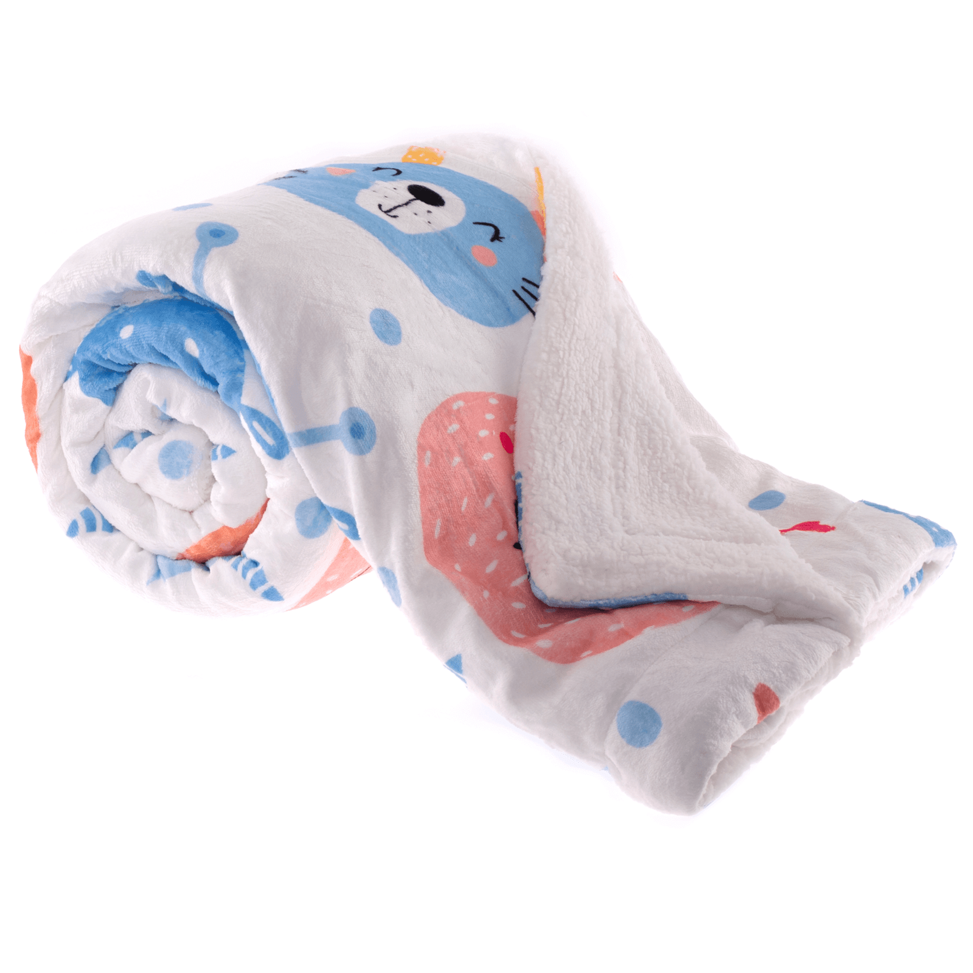 Obojstranná baránková deka, biela/detský vzor, 150x200cm, MIDAS TYP2