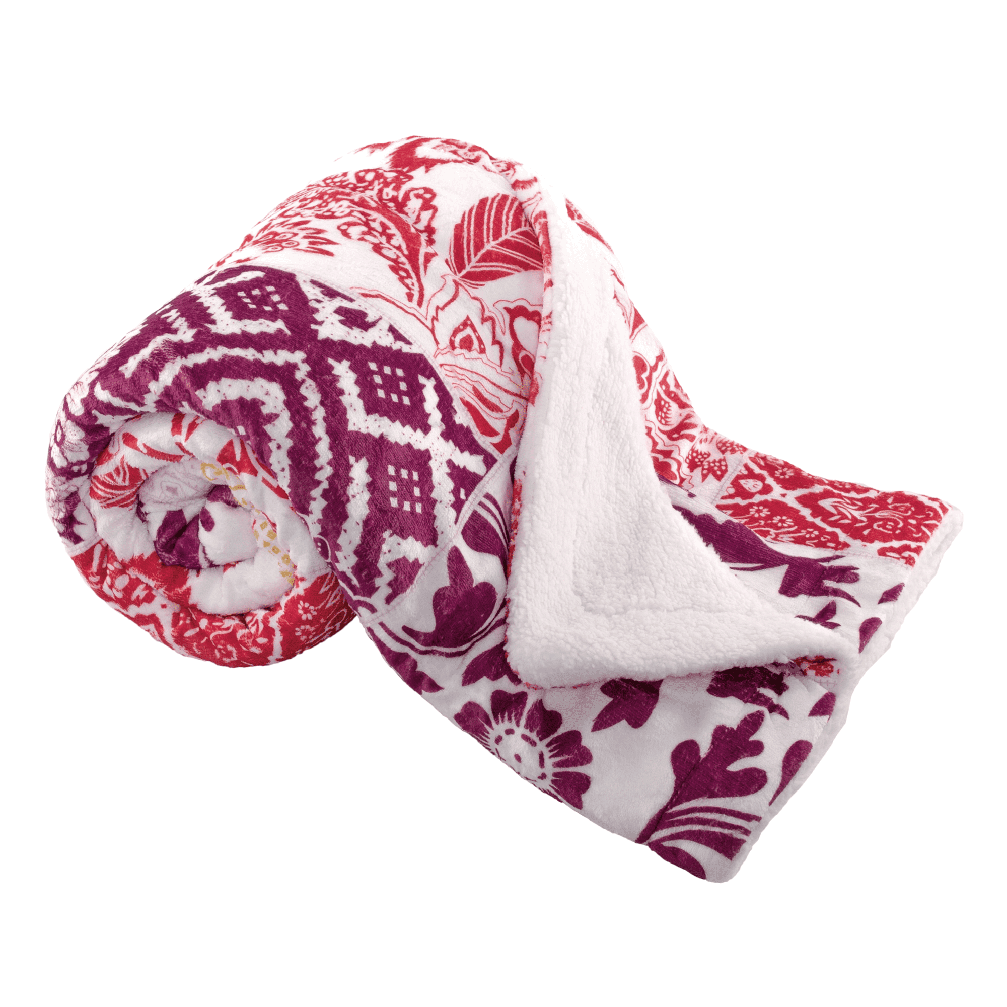 Obojstranná baránková deka, fialová/červená/žltá/vzor, 150x200cm, VILNUS TYP2
