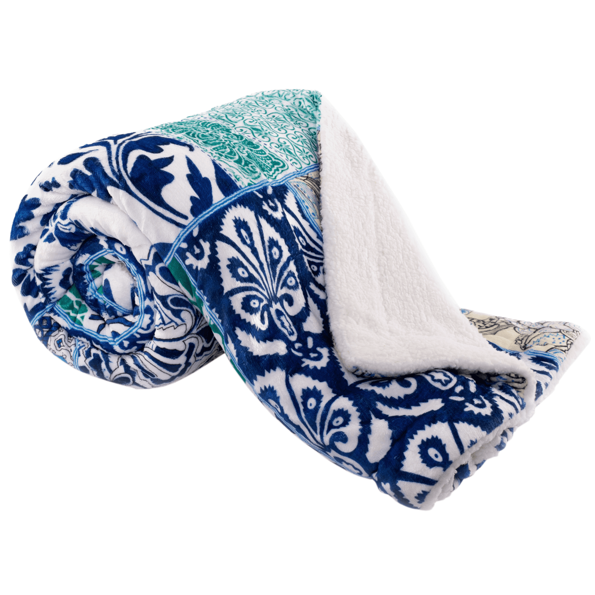 Obojstranná baránková deka, modrá/zelená/vzor, 150x200cm, VILNUS TYP1
