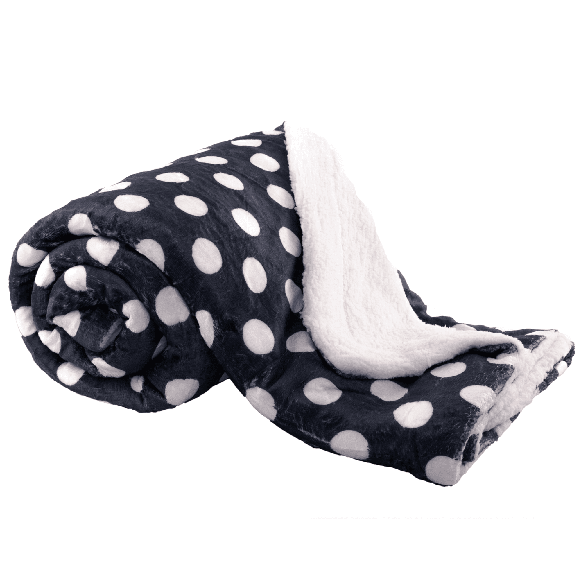Obojstranná baránková deka, tmavosivá/vzor bodky, 150x200cm, DOTIS