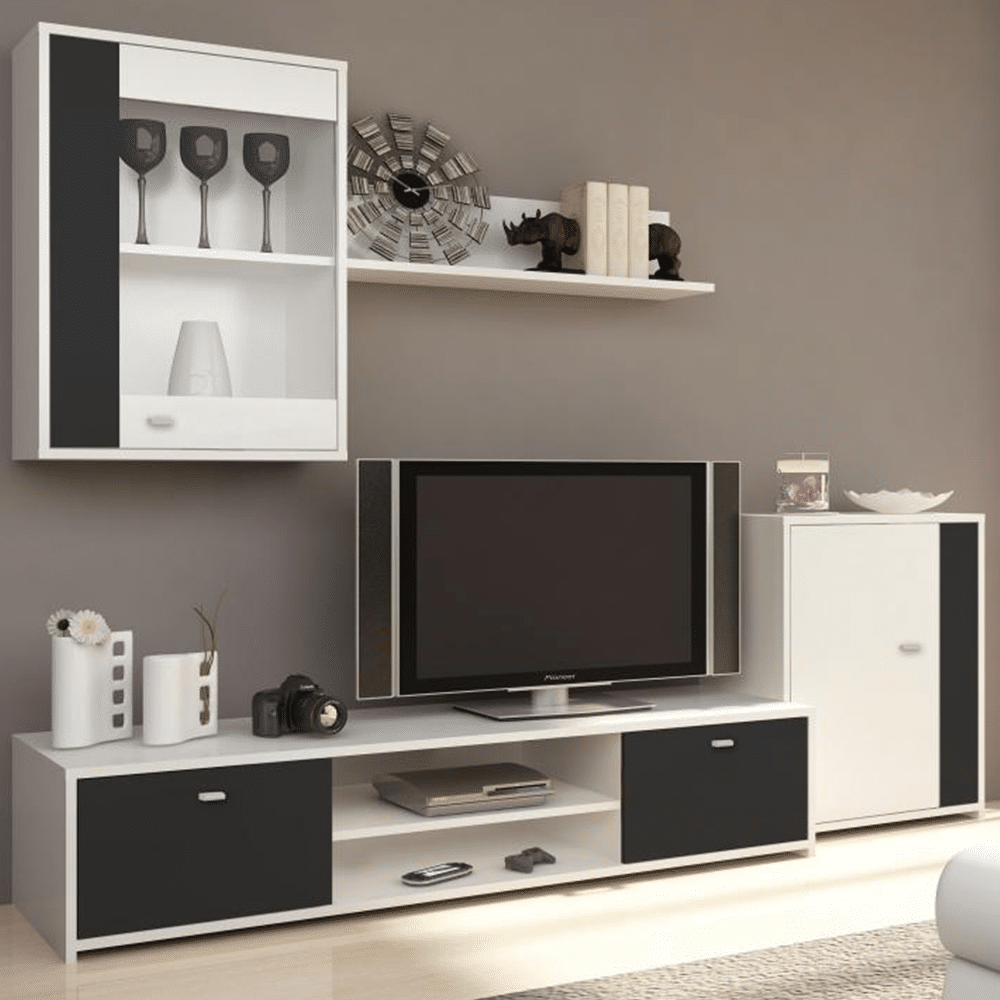Obývacia izba GENTA vo farebnom prevedení biela/čierna. Materiál laminovaná DTD a ABS hrany.