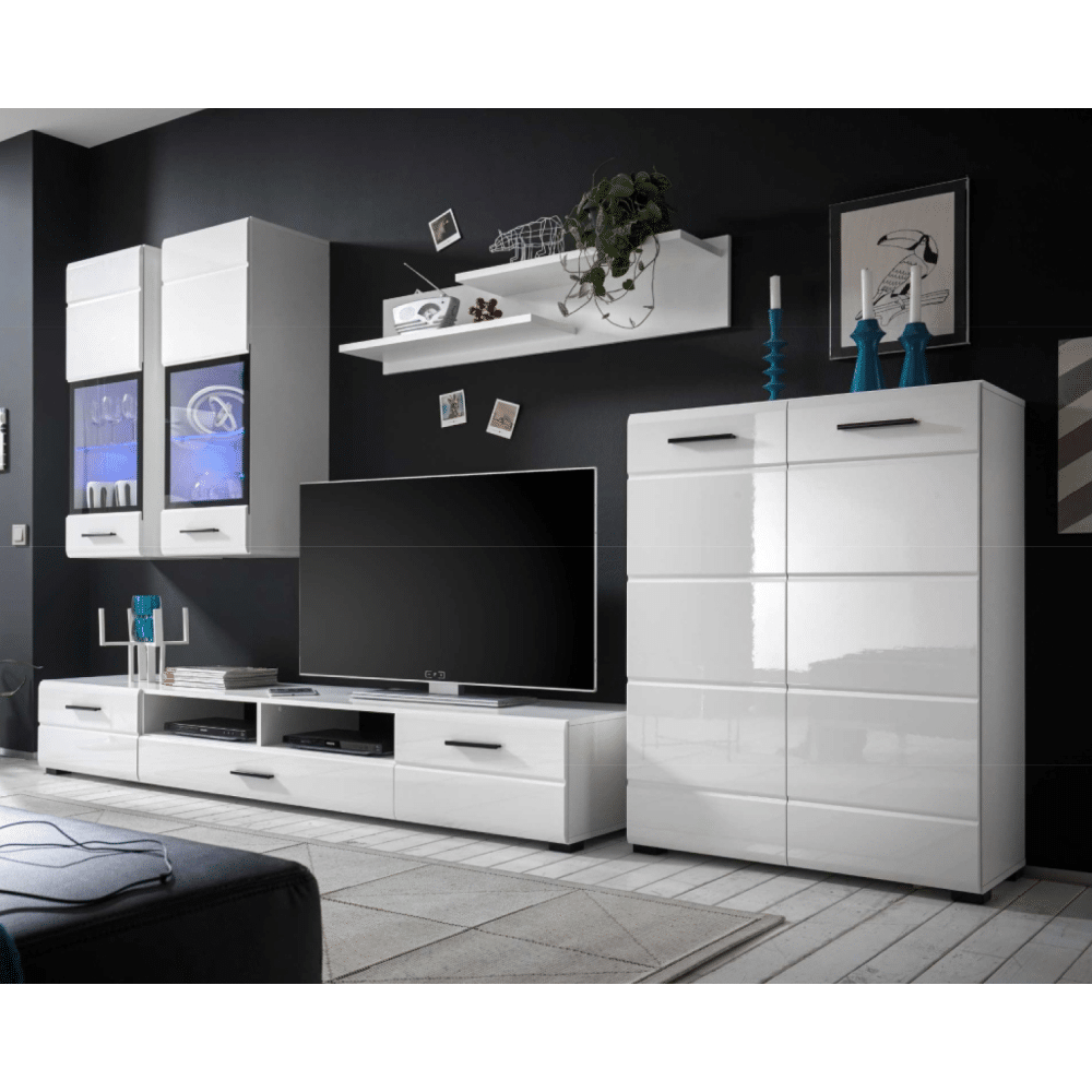 Obývacia stena, biela extra vysoký lesk HG, ARCTIC