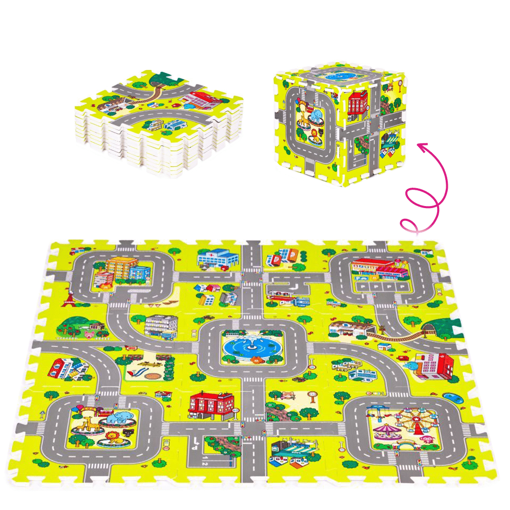 Penové puzzle, 9 ks, mix farieb, mesto, KAIA TYP 3