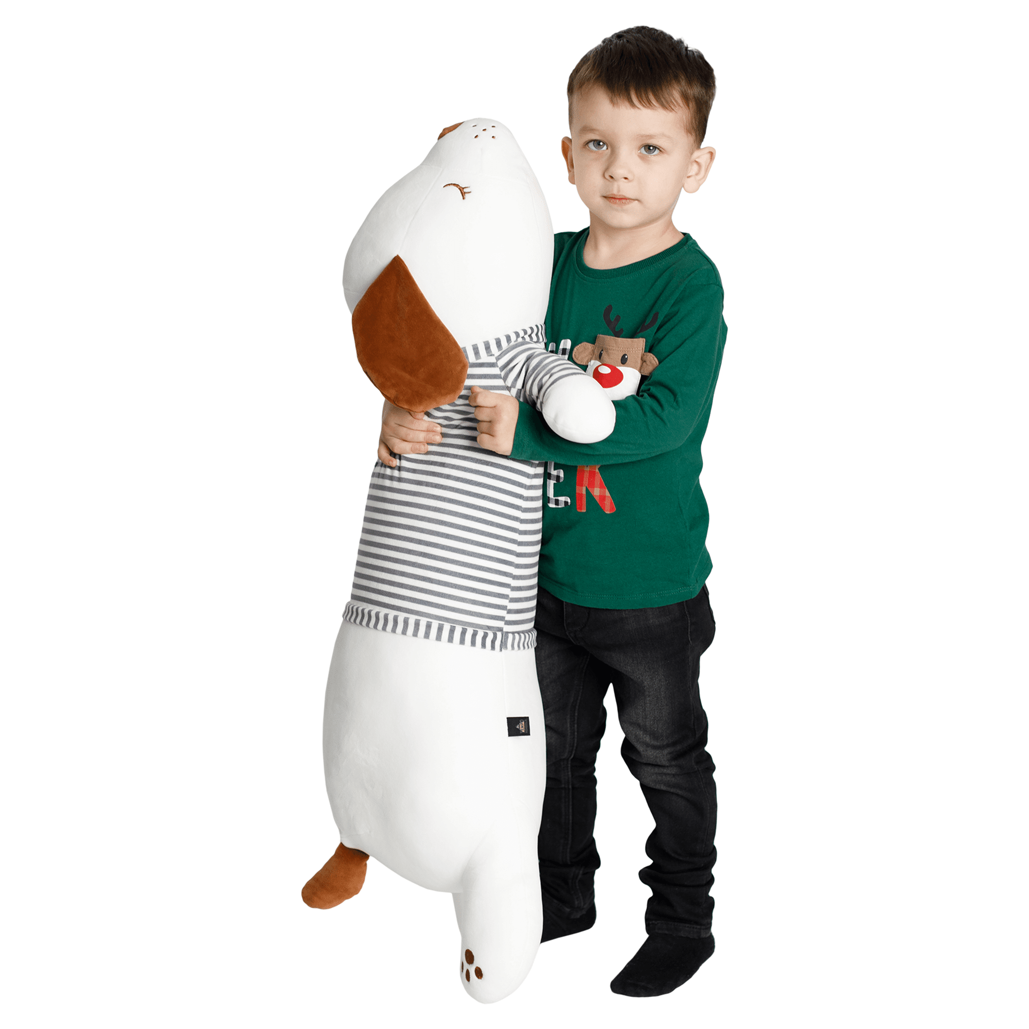 Plyšový psík, biela/hnedá/sivý pásik, 92cm, KINGO typ 2