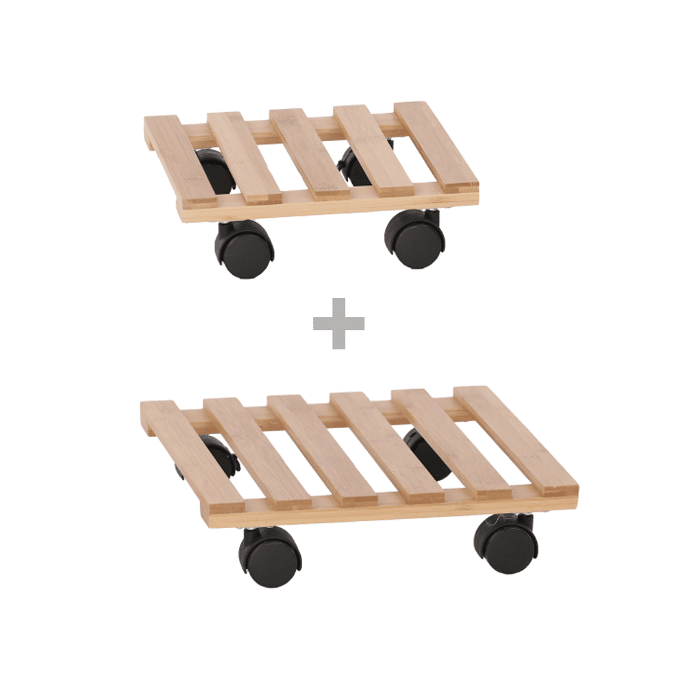 Podstavec pod kvetináč, set 2 ks, s kolieskami, bambus, KOSMA