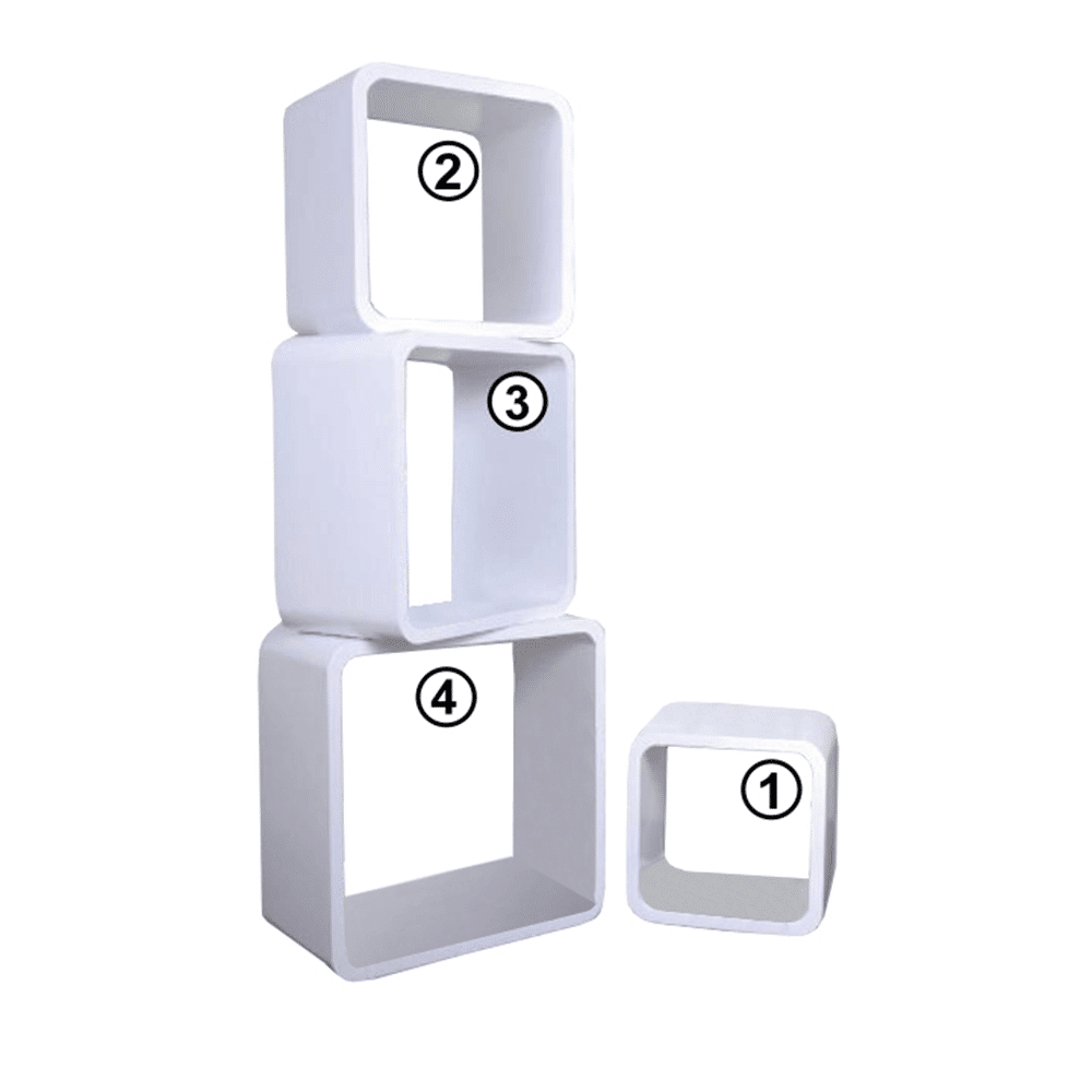 Rozmery ŠxVxH: 1 – 26x26x20 cm, 2 – 31x31x20 cm, 3 – 36x36x20 cm, 4 – 41x41x20 cm.