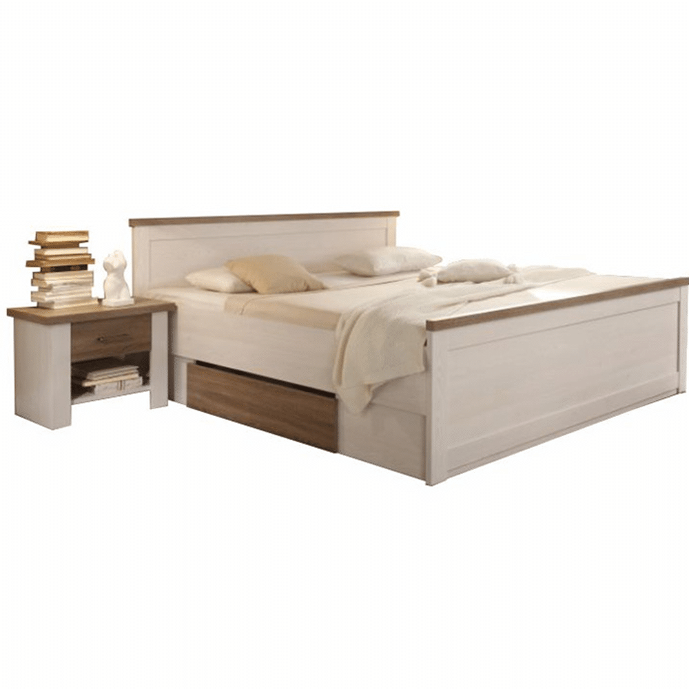 Posteľ + 2x nočný stolík, pínia biela/dub sonoma truflový, LUMERA