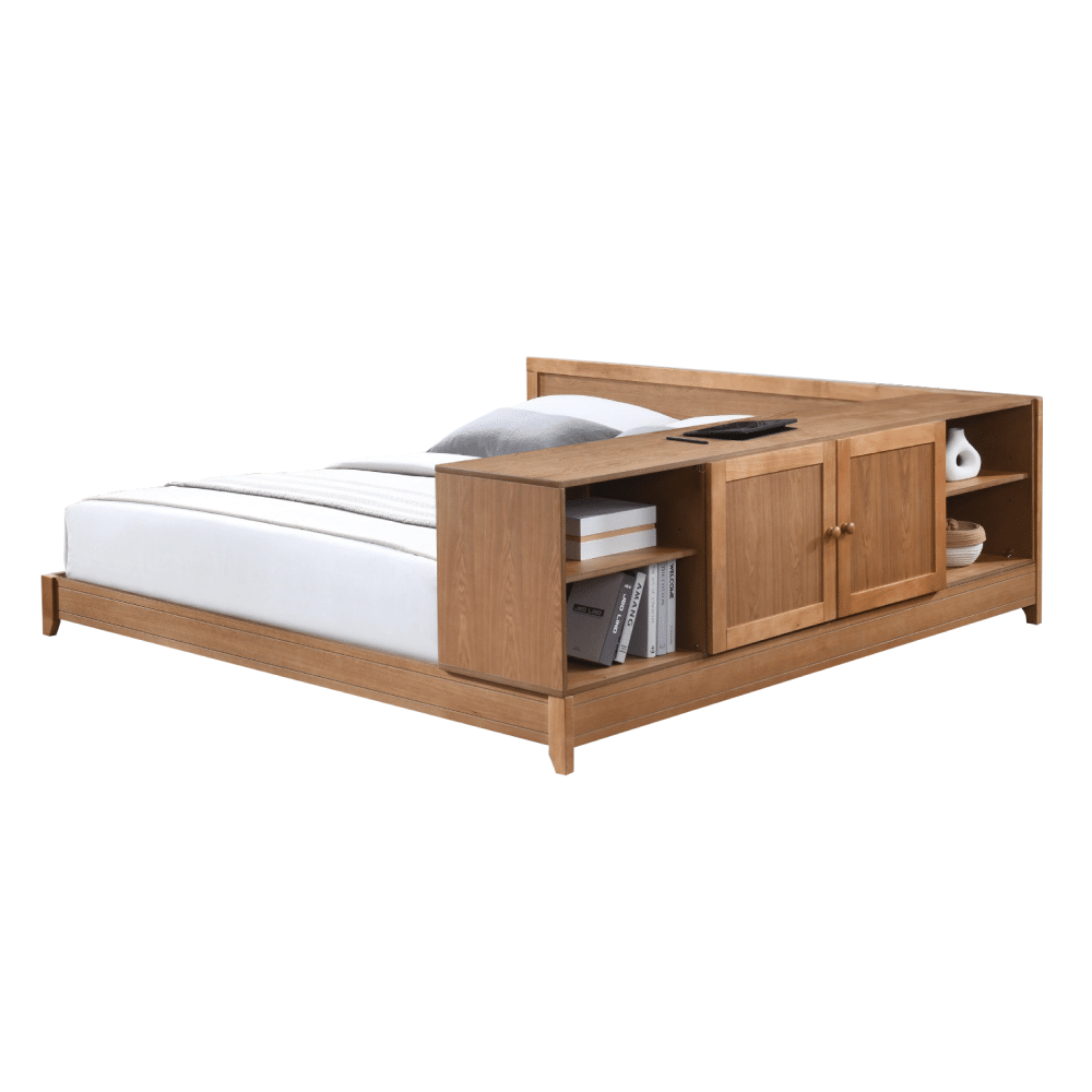 Posteľ s komodou, dub, 160×200, OBYS