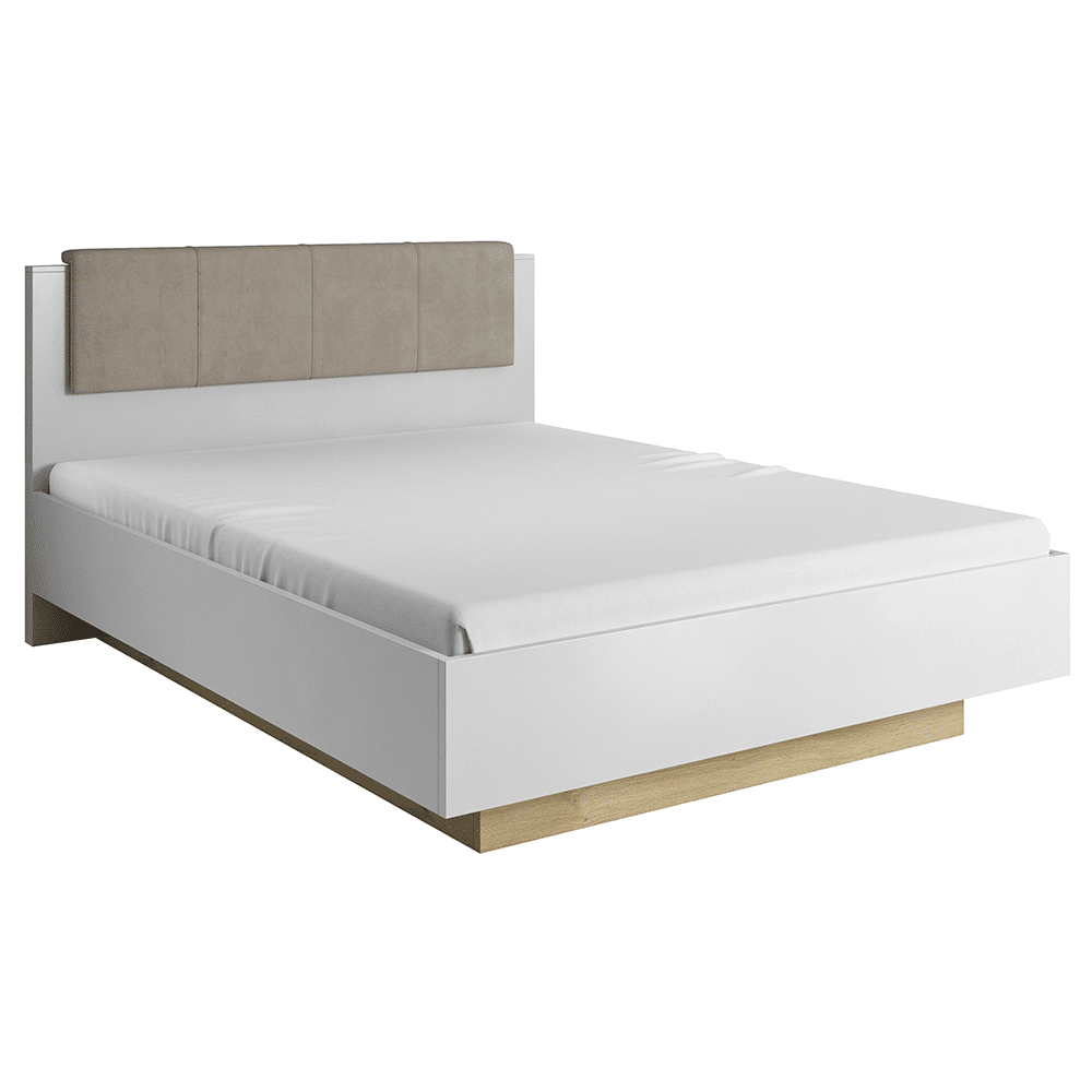 Posteľ s úložným priestorom, biela/dub grandson/biely lesk, CITY