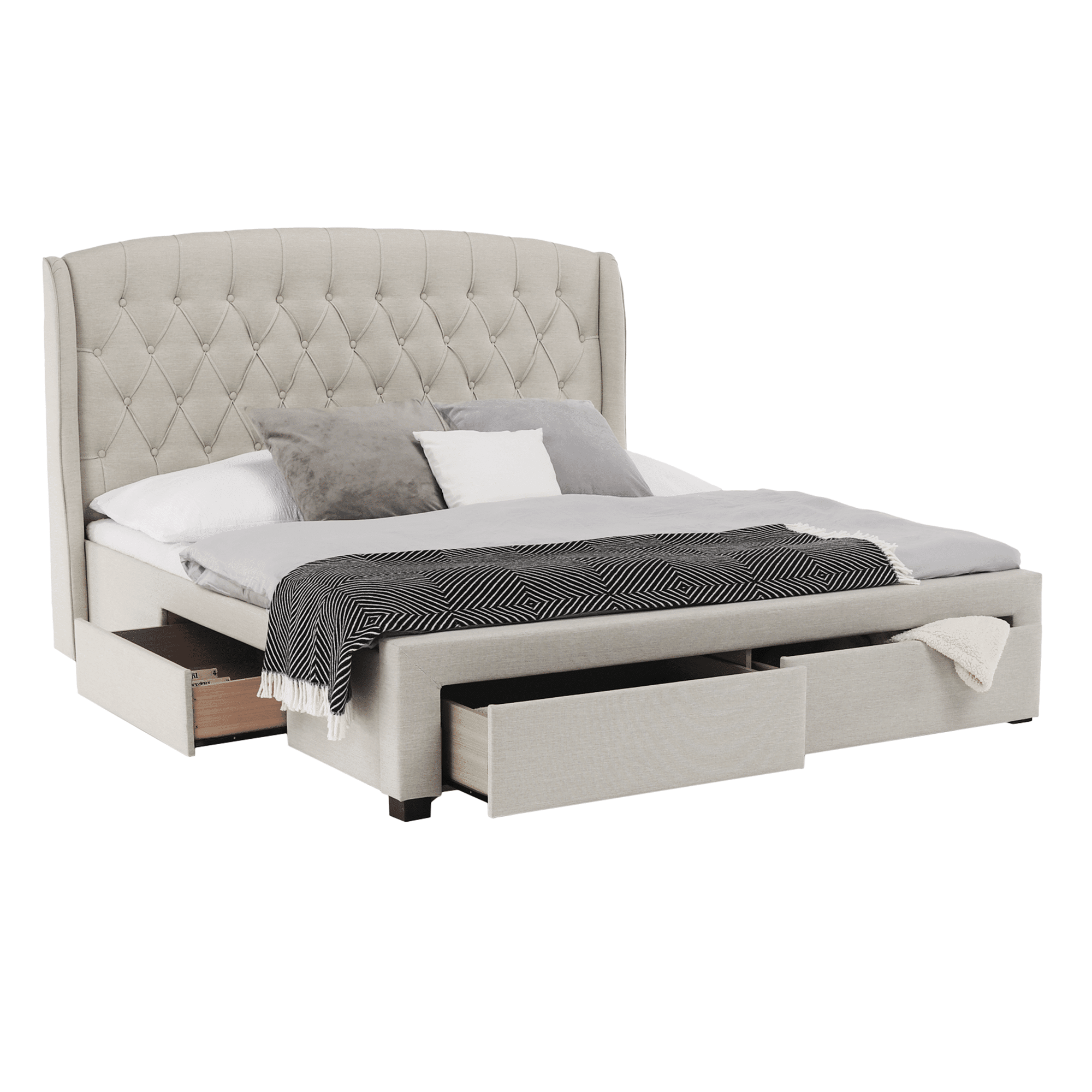 Posteľ s úložným priestorom, krémová látka, 160×200, AKANA