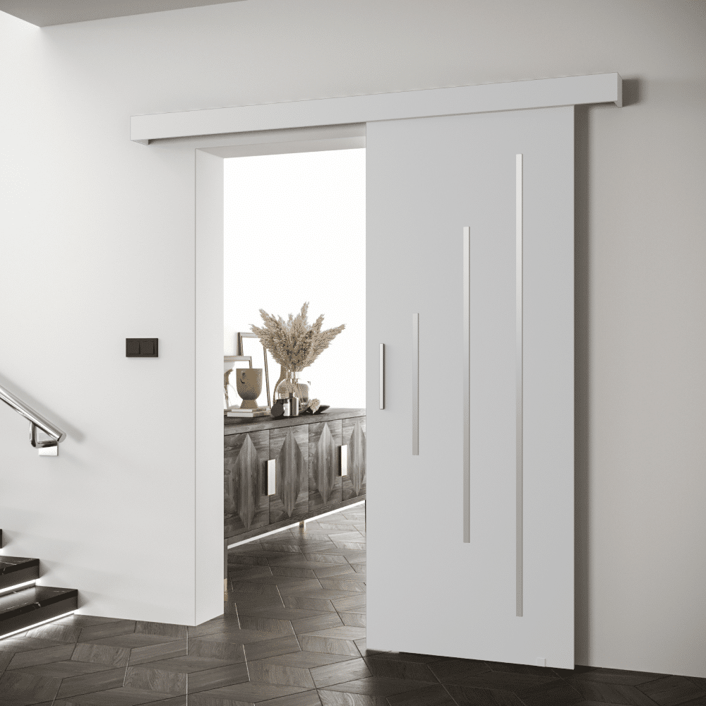 Posuvné dvere, biela/biela/strieborná, SALDOR 90 Y